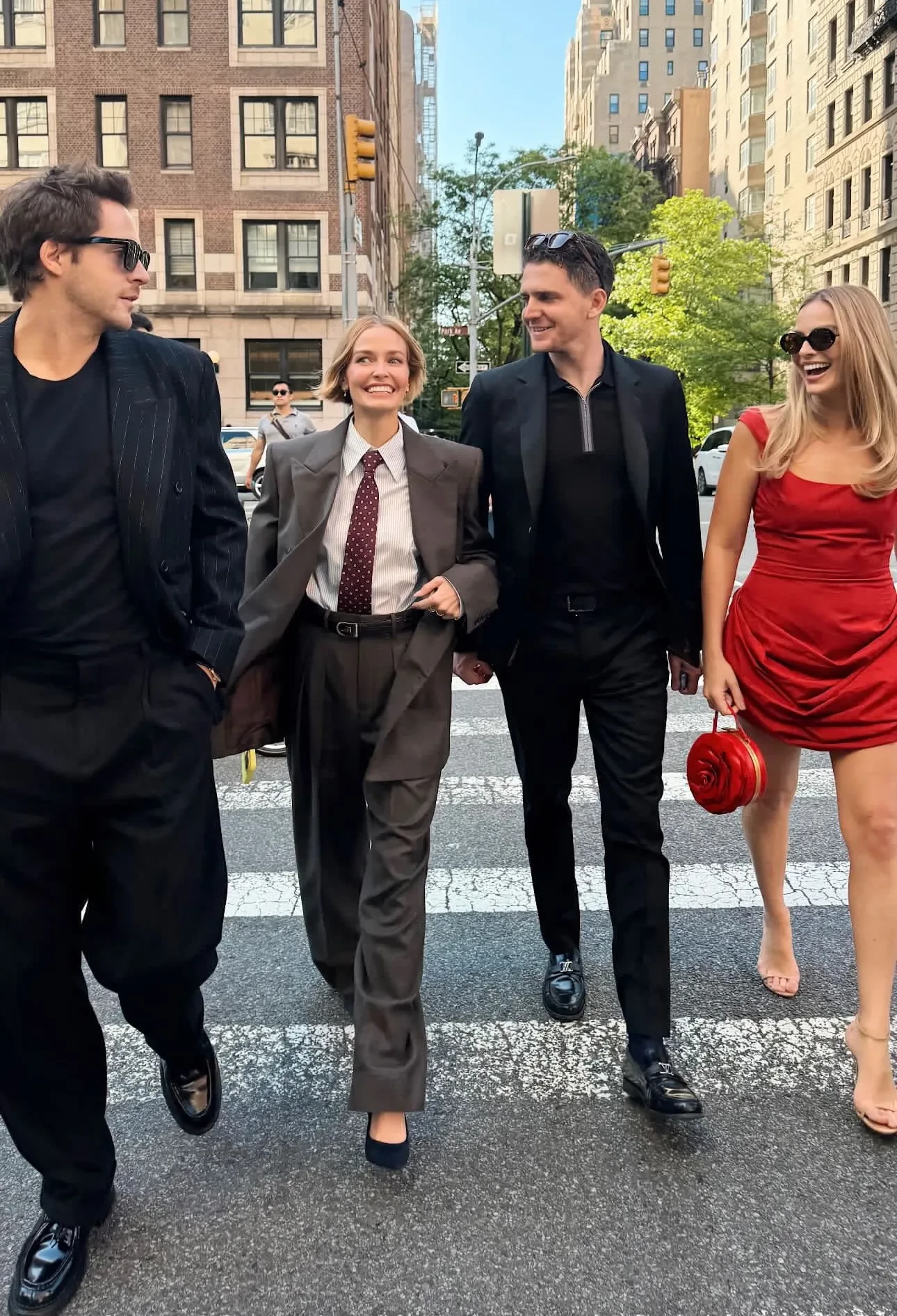 Во время церемонии невеста была одета в Magda Burtym, а после сменила белый наряд на платье с газетным принтом. Одна из близких подруг Фиби, 34-летняя Марго Робби, которая полгода назад стала мамой, пришла в красном мини-платье тоже Magda Burtym, а на вечеринку переоделась в наряд с леопардовым принтом.