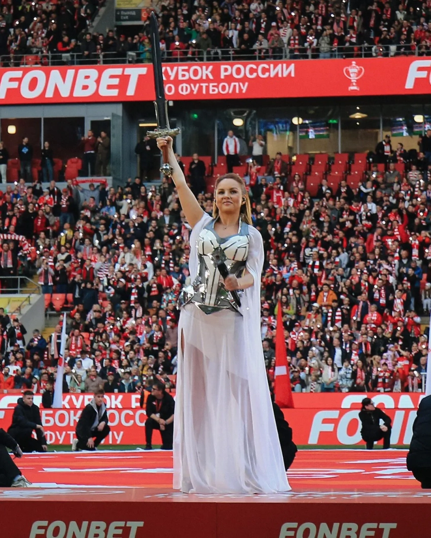 Певица МакSим, чья песня "Знаешь ли ты" уже давно является неофициальным гимном клуба "Спартак", поддержала команду и выступила перед матчем "Спартака" с "Ростовом" (среди зрителей, кстати, были молодые родители Александр Петров и его жена). Свой хит 41-летняя певица исполнила перед 39 тысячами фанатов. На поле звезда вышла в платье с корсетом в виде доспехов и прозрачной юбкой, в руках она держала меч. "Наша гладиаторка!" — подписал клуб фото певицы в своих соцсетях.