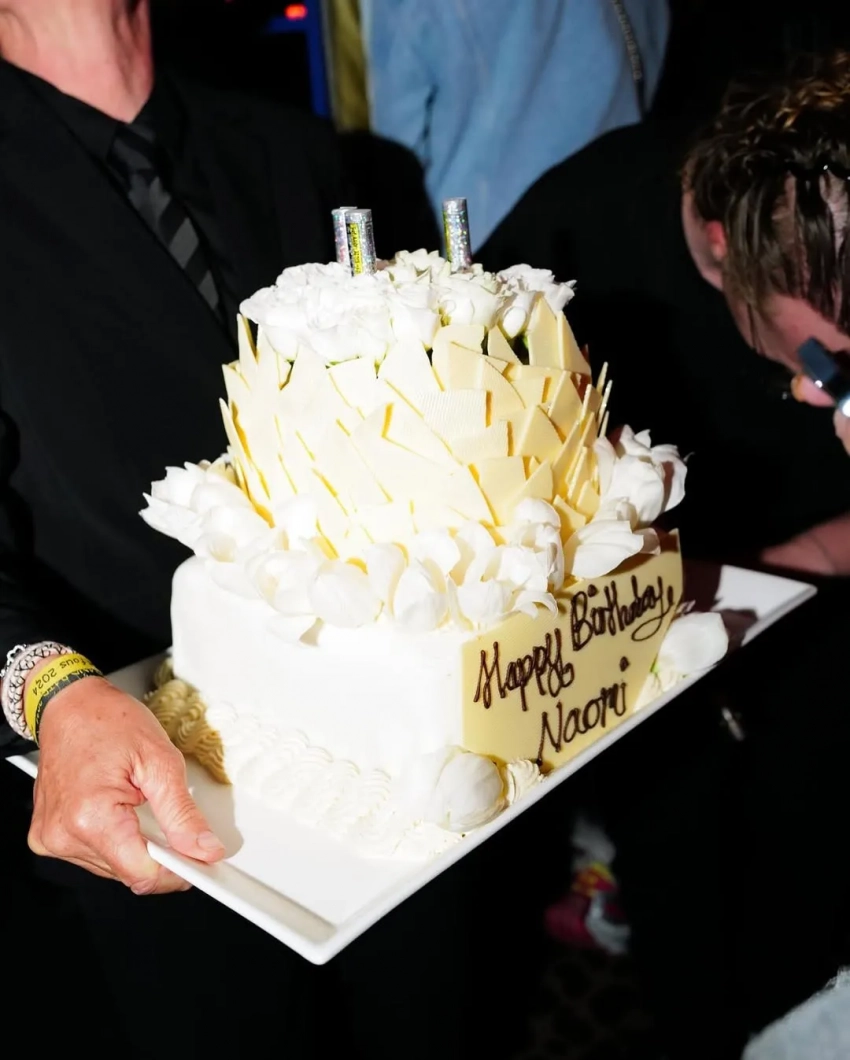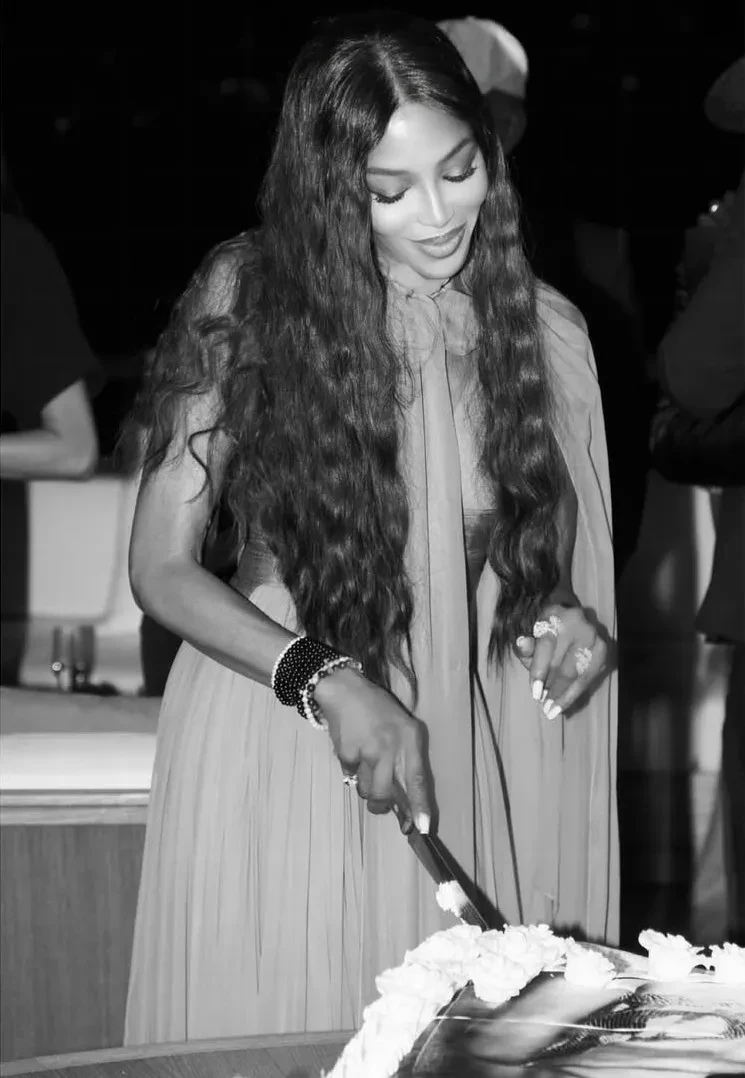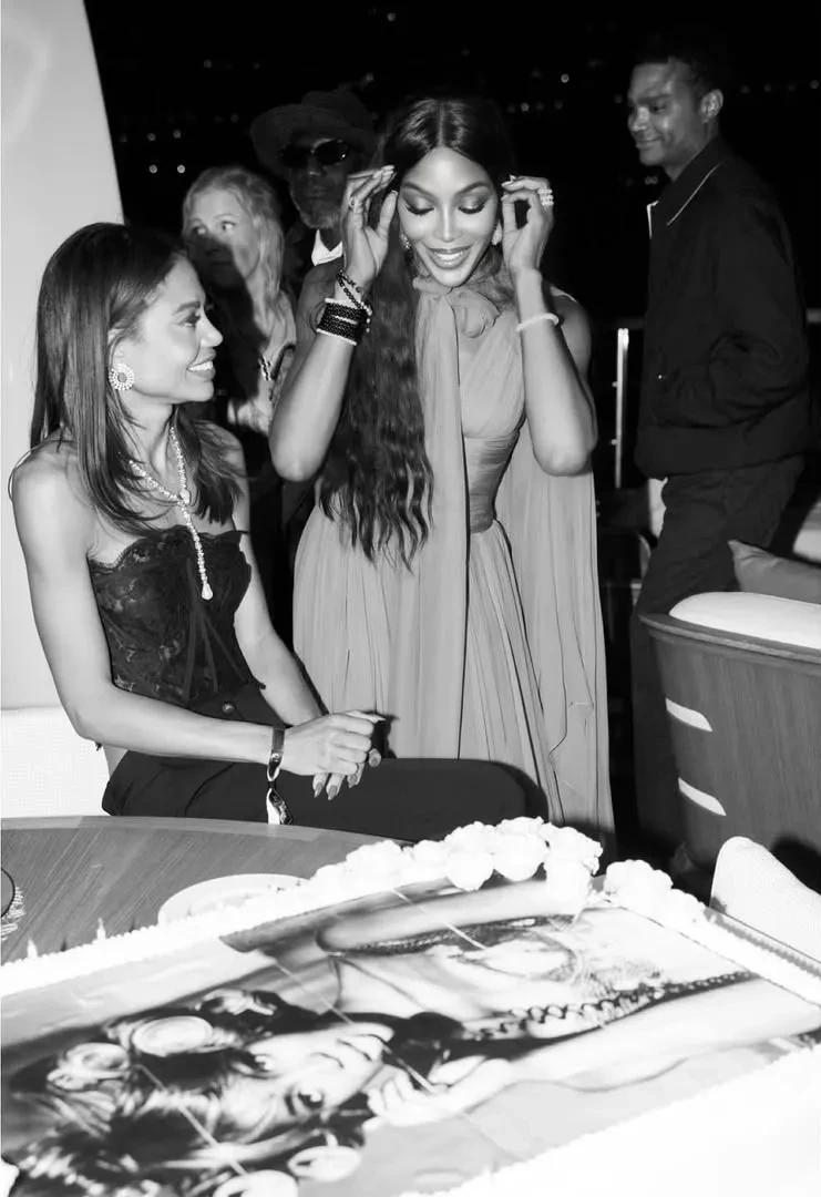 Судя по фото, у Кэмпбелл было две вечеринки. На одной она появилась бирюзовом платье Dolce&Gabbana, среди гостей были София Вергара, Эдриан Броуди и сын Арнольда Шварценеггера — звезда "Белого лотоса" Патрик Шварценеггер. Рядом с именинницей также находился мультимиллионер из Саудовской Аравии Мохаммед Аль Турки, с которым ей приписывают отношения. Торт для Наоми украсила её культовая фотография для Interview Magazine 1991 года.