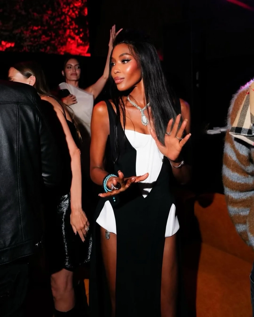 Второе торжество прошло в более узком кругу. Наоми появилась перед гостями в кастомном платье Mugler 1998 года, на вечеринке её также сопровождал Аль Турки.