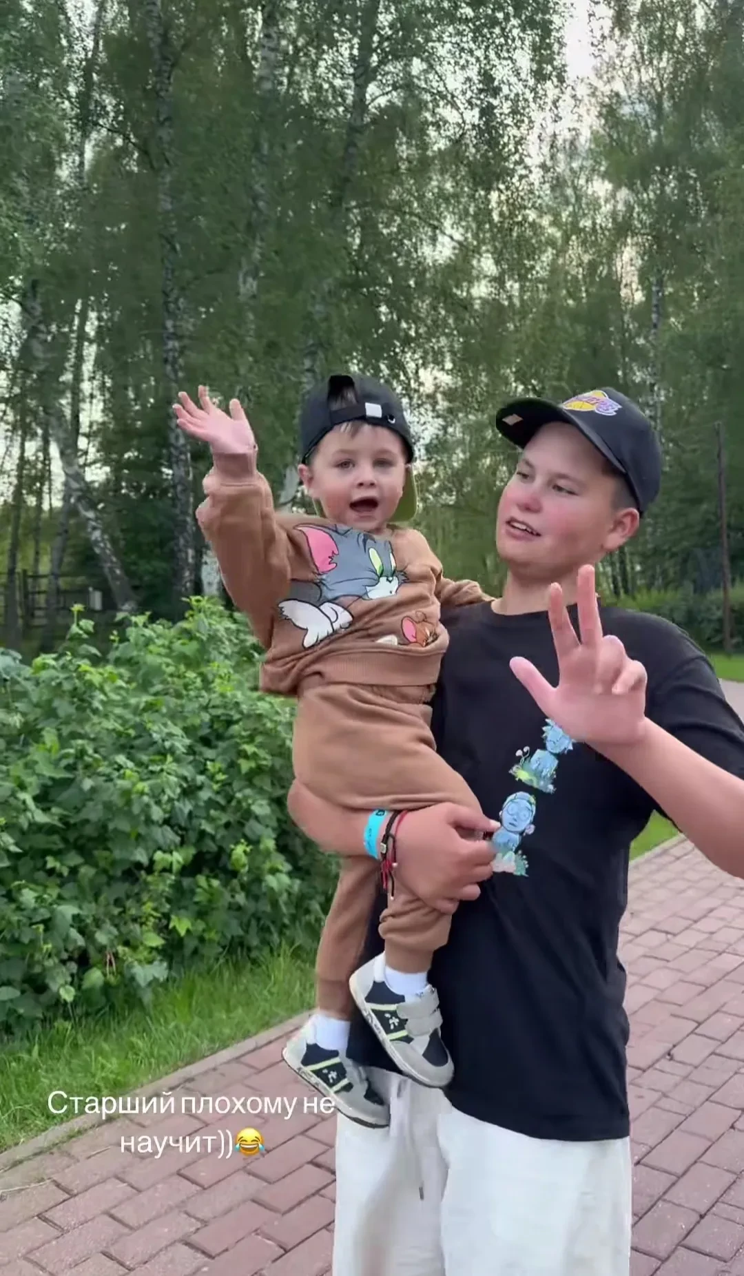 Так, в одном из коротких роликов 12-летний Тимофей учит двухлетнего Микаэля показывать определенный жест, а в другом Микаэль догоняет на самокате Тимофея, который уезжает вперед на скейте. “Старший плохому не научит”, — шутливо написал отец мальчиков в инстаграме.