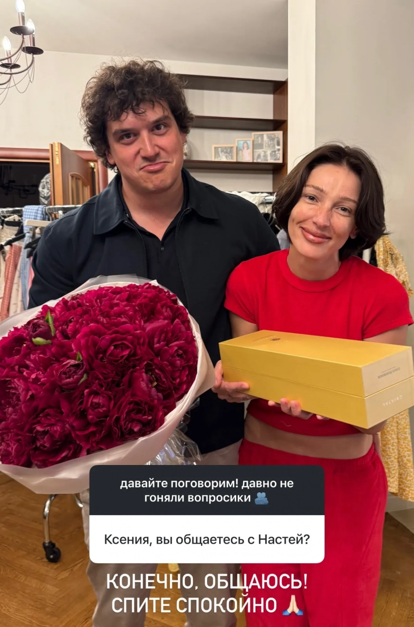 Ксения отвечала на вопросы подписчиков в инстаграме*, и один из них спросил, общаются ли они с Настей, на что она ответила положительно: "Конечно, общаюсь! Спите спокойно".