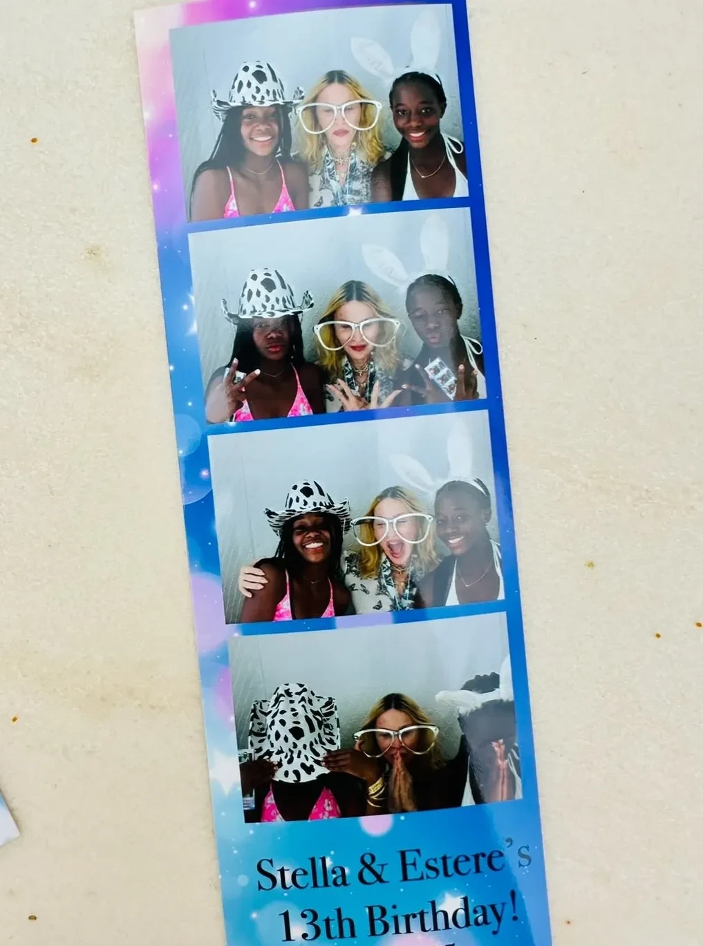 Мадонна с дочерьмиМадонна с дочерьмиПраздничный торт Мадонны"Лабубу повсюду! С днём рождения, Стелла и Эстер! Королевы-девы! Ничто не могло подготовить меня к вашим характерам, вашей энергии и вашим очень сильным убеждениям", — написала поп-звезда в соцсетях. Праздник действительно прошёл очень активно: дети и гости весь день играли в футбол, прыгали на батуте, катались на водных горках и пели в караоке.