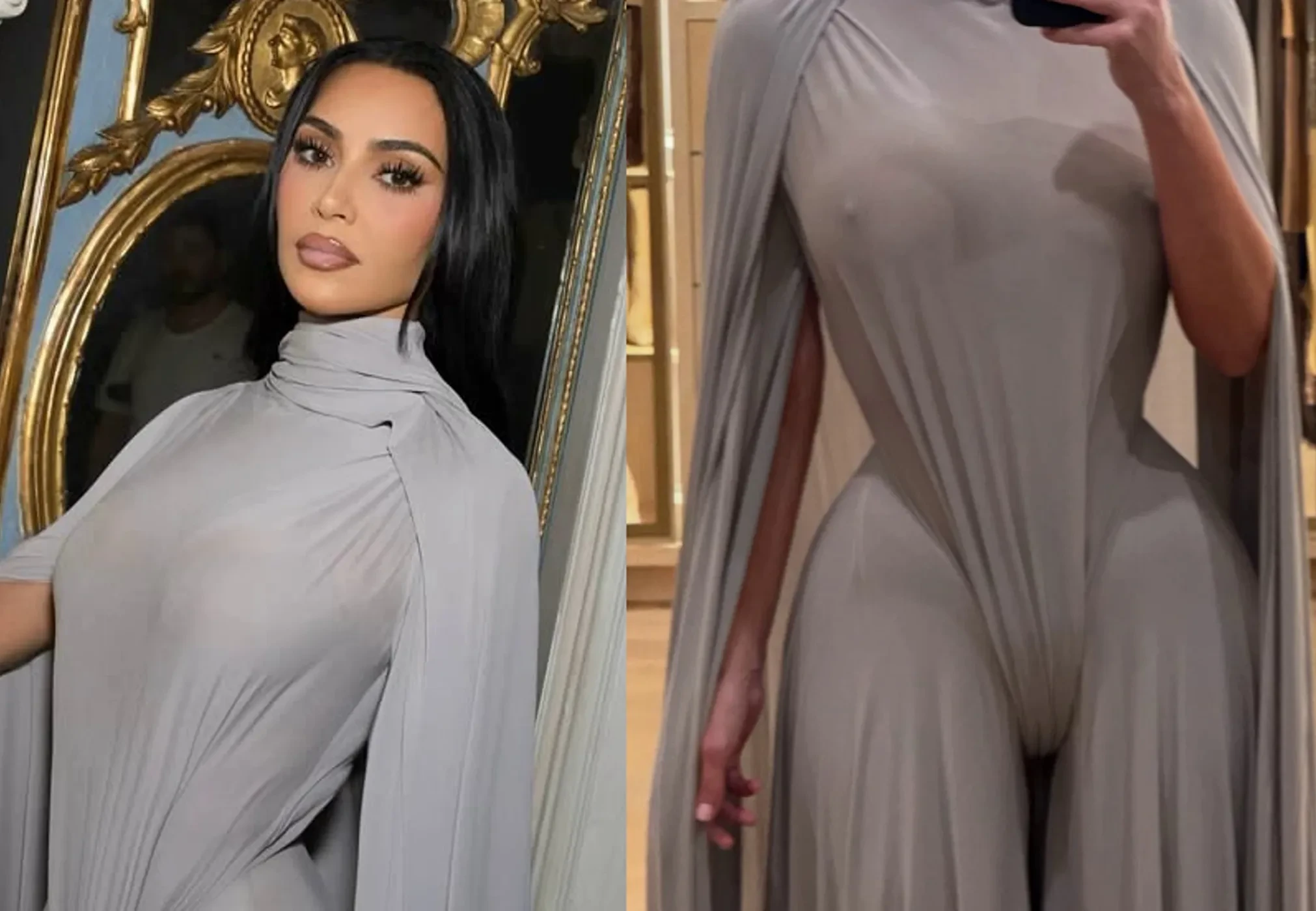 Дело в том, что 44-летняя телезвезда посетила премию в необычном сером наряде из дебютной кутюрной коллекции Гленна Мартенса для Maison Margiela. Драпированное платье-комбинезон отличается необычным силуэтом и тем, что предполагает отсутствие нижнего белья. Кардашьян, впрочем, не стала излишне эпатировать публику и надела под наряд бельё — непосредственно на мероприятие. Но и на голое тело комбинезон она также примерила и сделала селфи, которое опубликовала в своих соцсетях.