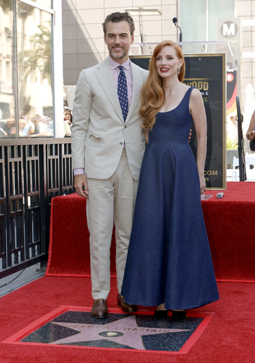48-летняя Джессика Честейн получила именную звезду на "Аллее славы" в Голливуде. Поздравить актрису пришли коллеги: 85-летний Аль Пачино и 60-летняя Виола Дэвис, а также муж Джан Лука Пасси Де Препозуло.