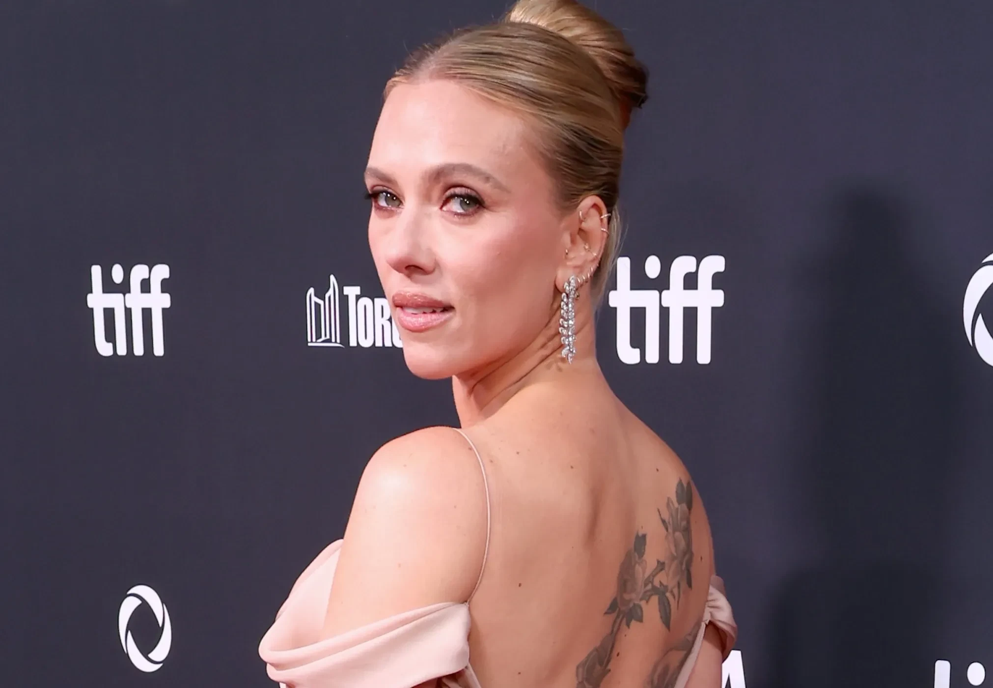 Актриса вышла на красную дорожку в бледно-розовом платье Valentino с декольте и открытой спиной, продемонстрировав свои татуировки. Свой образ Скарлетт дополнила причёской с пучком и серьгами с бриллиантами.