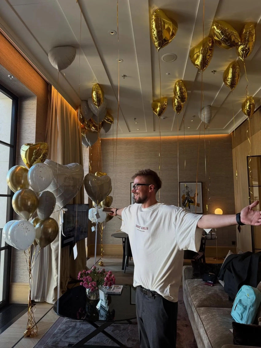 Александр Петров и его 24-летняя супруга Виктория отпраздновали 10 сентября вторую годовщину свадьбы. В своих соцсетях они публично поздравили друг друга и поделились праздничными кадрами, показав, как провели этот день: пара надела парные футболки, украсила квартиру шариками и памятными фотографиями, а вечером, сменив наряды, отправилась на свидание в ресторан.