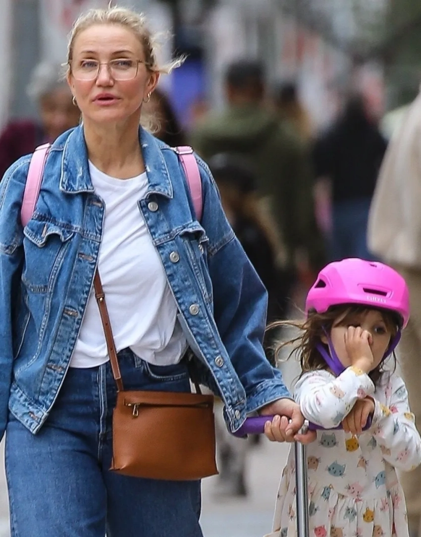 53-летнюю Кэмерон Диас засняли в Нью-Йорке во время совместной прогулки с её пятилетней дочерью Раддикс.