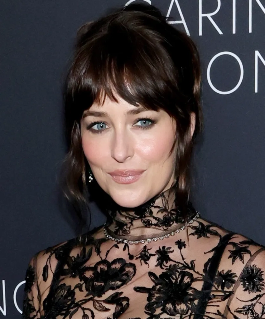 35-летняя актриса стала звездой вечера и заметно выделялась среди остальных селебрити. Она пришла в кружевном и полностью прозрачном платье Gucci, а под него надела чёрное нижнее белье. Образ Дакота дополнила укладкой с пучком и серьгами с изумрудами.