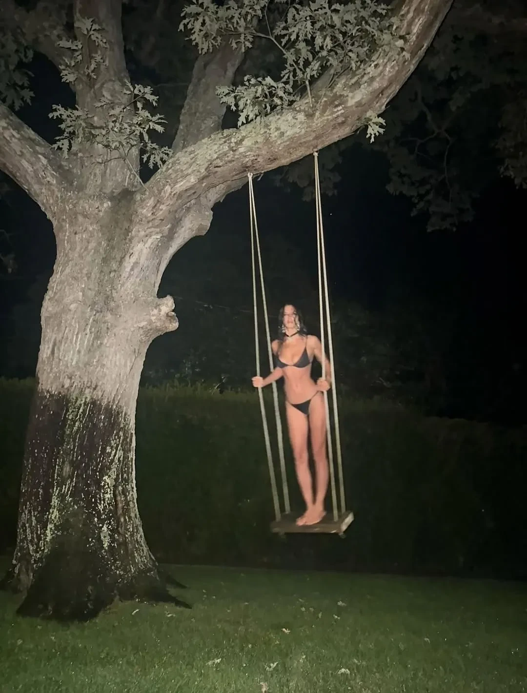 "Королева демонов". Ирина Шейк снялась ночью на качелях в бикини и чокере с крестом