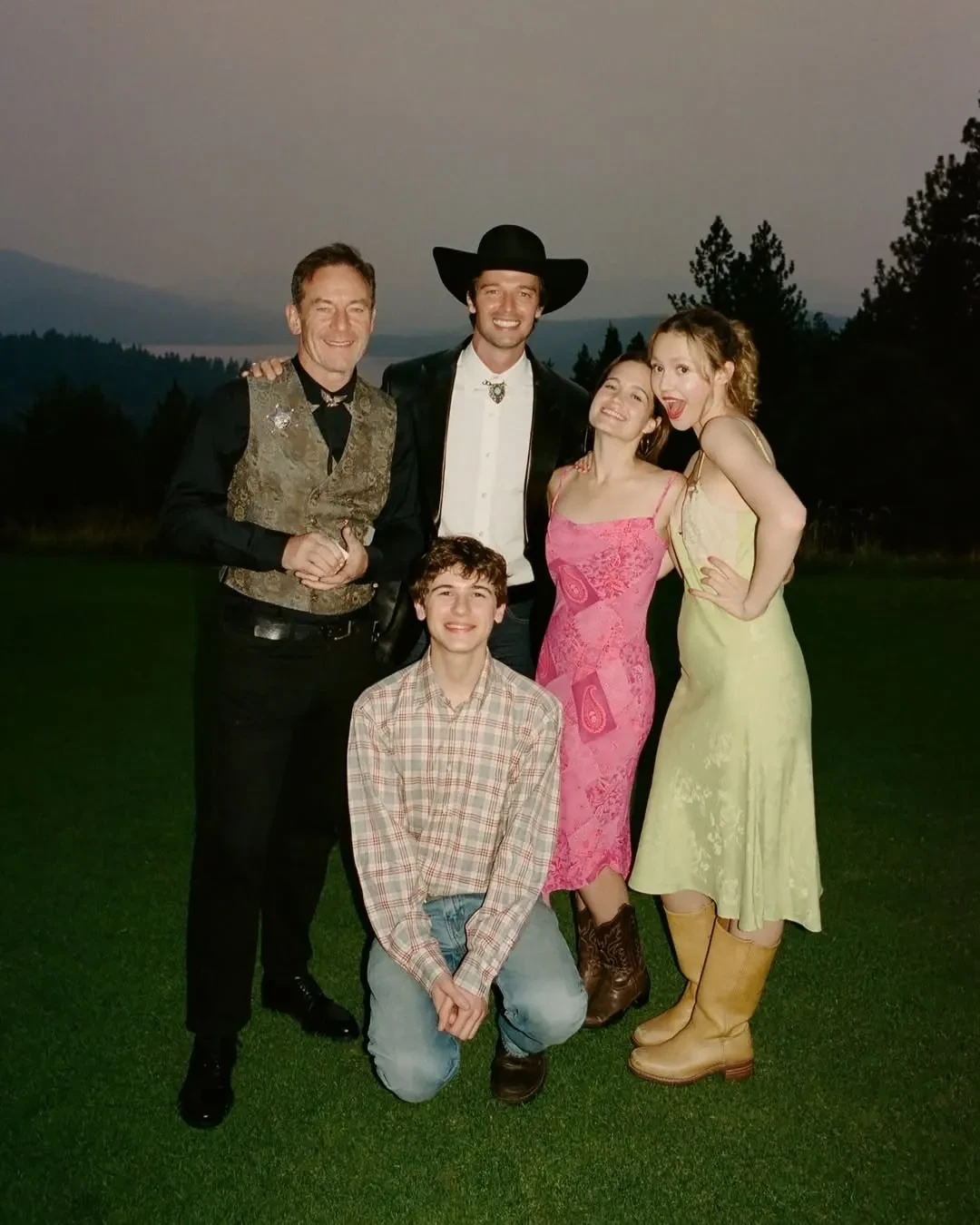 Торжество было организовано в городке Кёр-д’Ален в Айдахо и продолжалось три дня, так что невеста успела продемонстрировать несколько нарядов. На репетиционный ужин она надела платье Zimmerman с длинными рукавами, асимметричным подолом и отделкой, напоминающей лепестки цветов. А на приветственное барбекю в стиле вестерн — кружевное платье Bec + Bridge, чёрные ковбойские сапоги и чёрную шляпу.