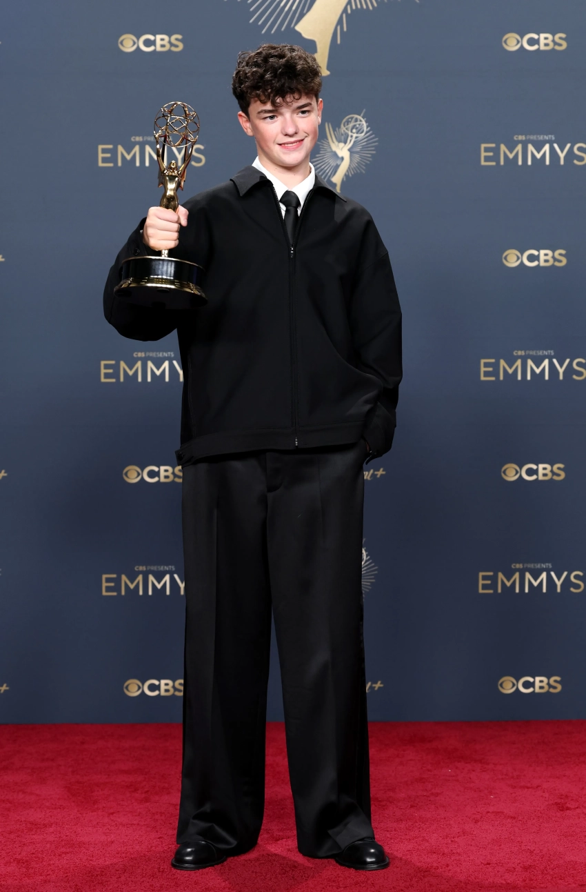 Генри и Колин ФарреллВ категории мини-сериалов победил "Переходный возраст", собрав восемь наград. 15-летний актёр шоу Оуэн Купер стал самым молодым обладателем премии "Эмми" за лучшую мужскую роль второго плана.