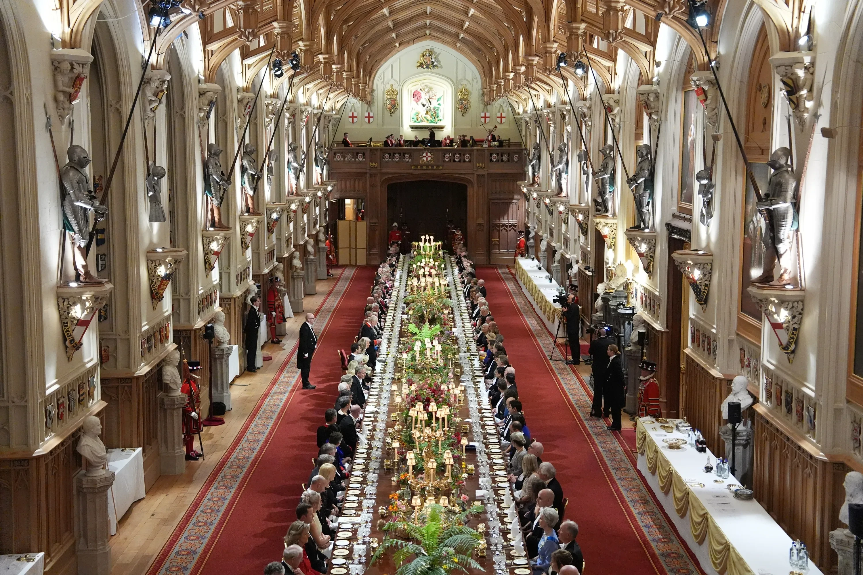 Король Карл III и королева Камилла, Кейт Миддлтон и принц Уильям на банкете в честь визита Дональда и Мелании Трамп