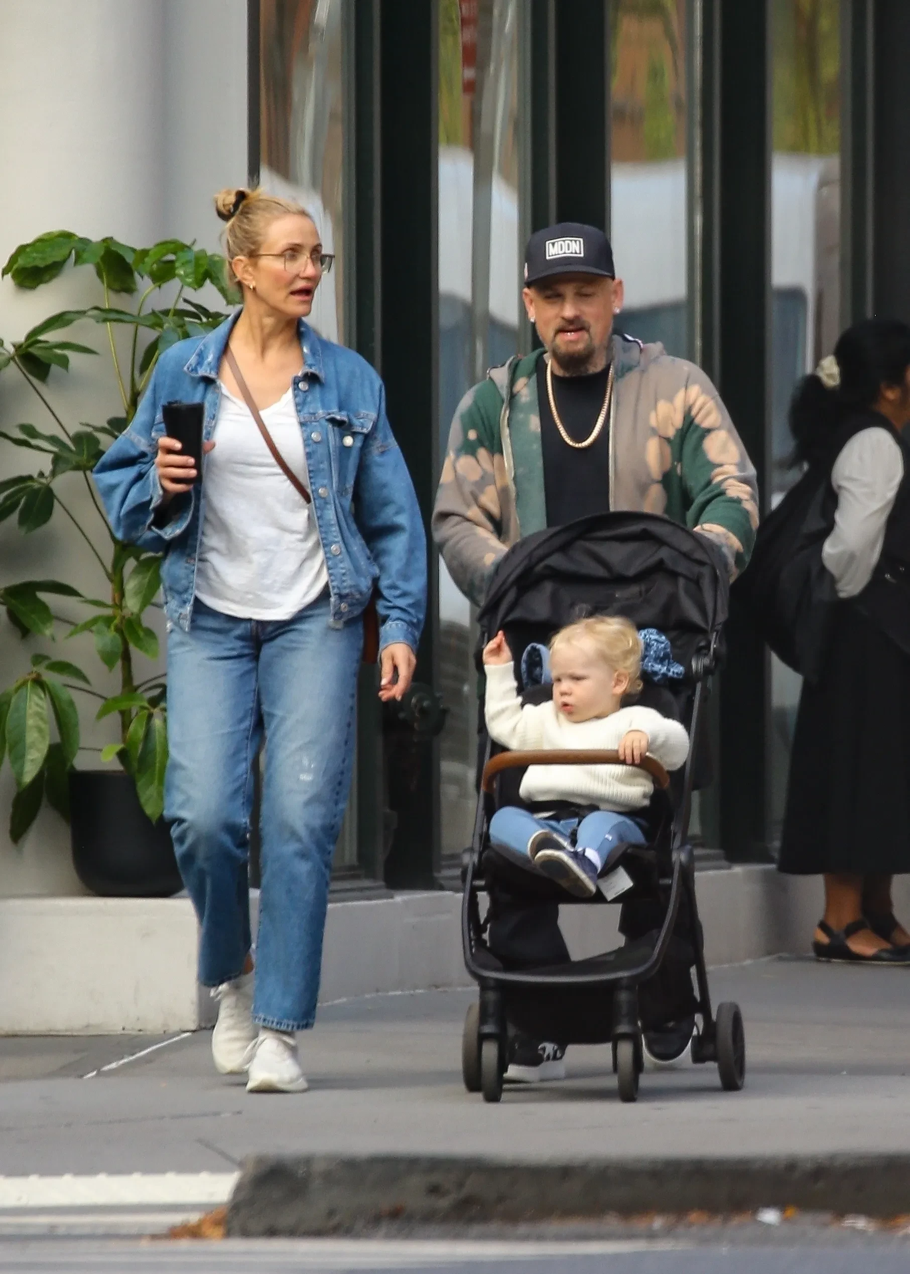 Кэмерон Диас заметили прогуливающейся в Нью-Йорке с мужем Бенджи Мэдденом и их подросшим сыном. Папарацци, преследовавшие 53-летнюю актрису, засняли, как она о чём-то увлечённо разговаривала с Мэдденом, пока он толкал перед собой коляску с полуторагодовалым Кардиналом.