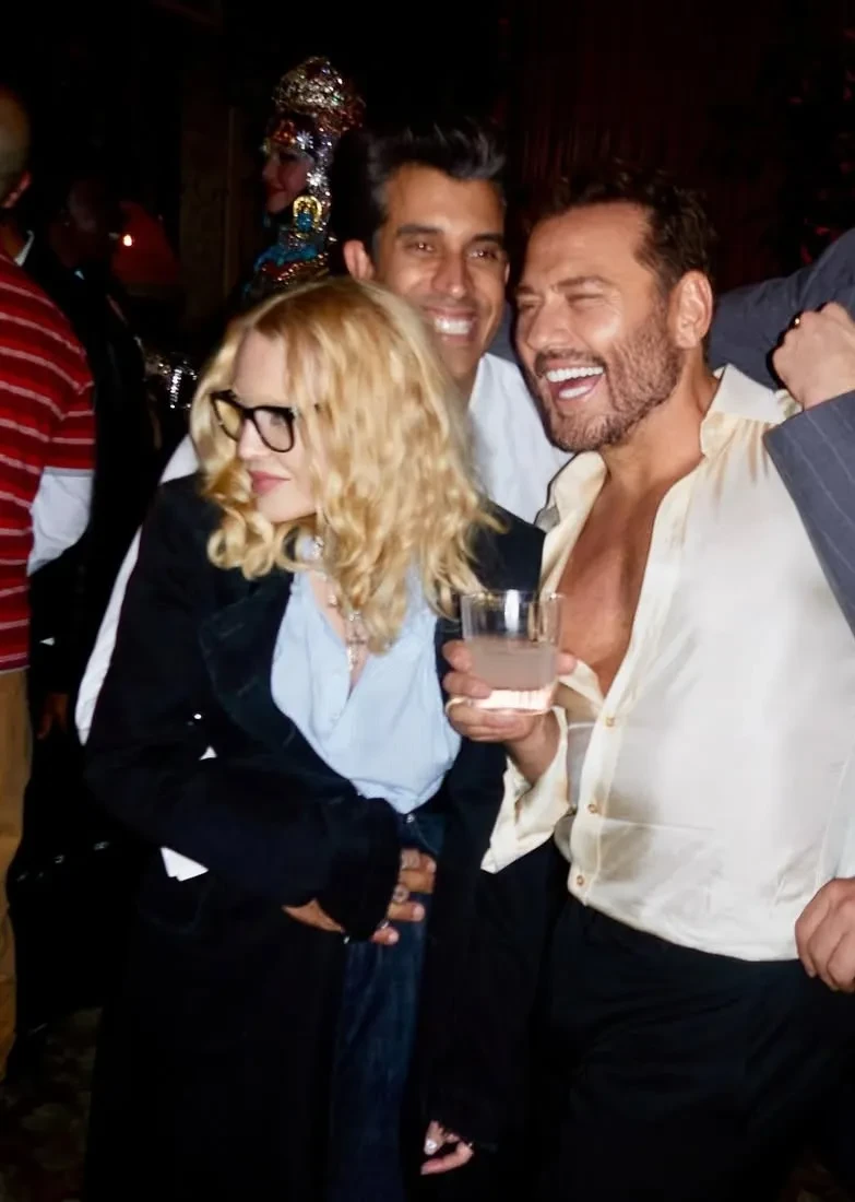 67-летняя Мадонна, которая недавно отметила 13-летие дочерей-близнецов, пришла на вечеринку в образе "офисной сирены": в рубашке, тренче и джинсах, дополнив образ очками с прозрачными линзами. 51-летняя Кейт Мосс позировала в чёрном платье и шляпе. Знаменитости и гости весь вечер угощались коктейлями, общались и фотографировались.