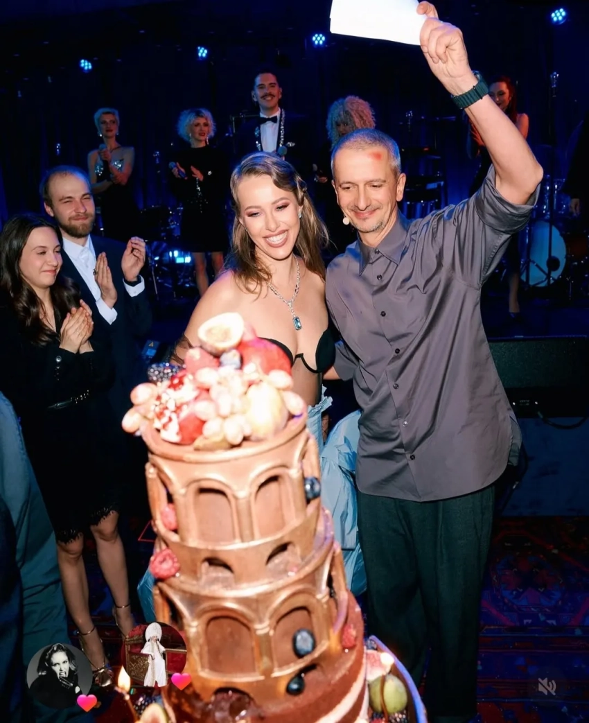 За организацию праздника, судя по всему, отвечал муж журналистки, 50-летний театральный режиссёр Константин Богомолов. Конечно же, он поздравил и обнял супругу перед собравшимися, среди которых был и сын Ксении от предыдущего брака с Максимом Виторганом, девятилетний Платон.