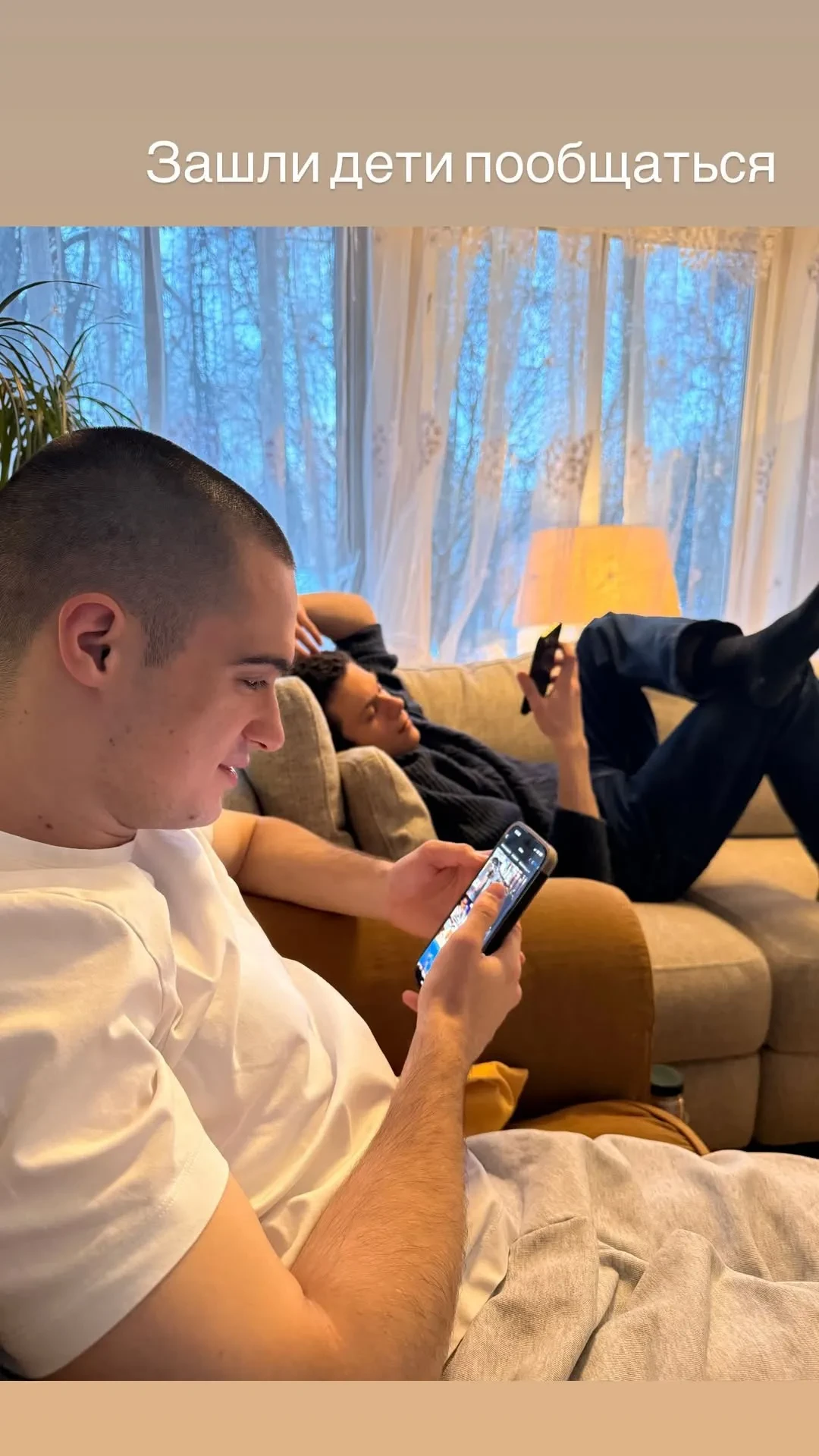 На снимке сыновья Анны запечатлены в домашней обстановке: оба сидят на диване и смотрят в телефон. Сама же Анна добавила фото, на котором предстала в чепчике ручной работы от актрисы Екатерины Вилковой. "Зашли дети пообщаться", — подписала Михалкова снимки, намекнув на то, что сыновья больше сосредоточены на телефонах, а не на общении с матерью.