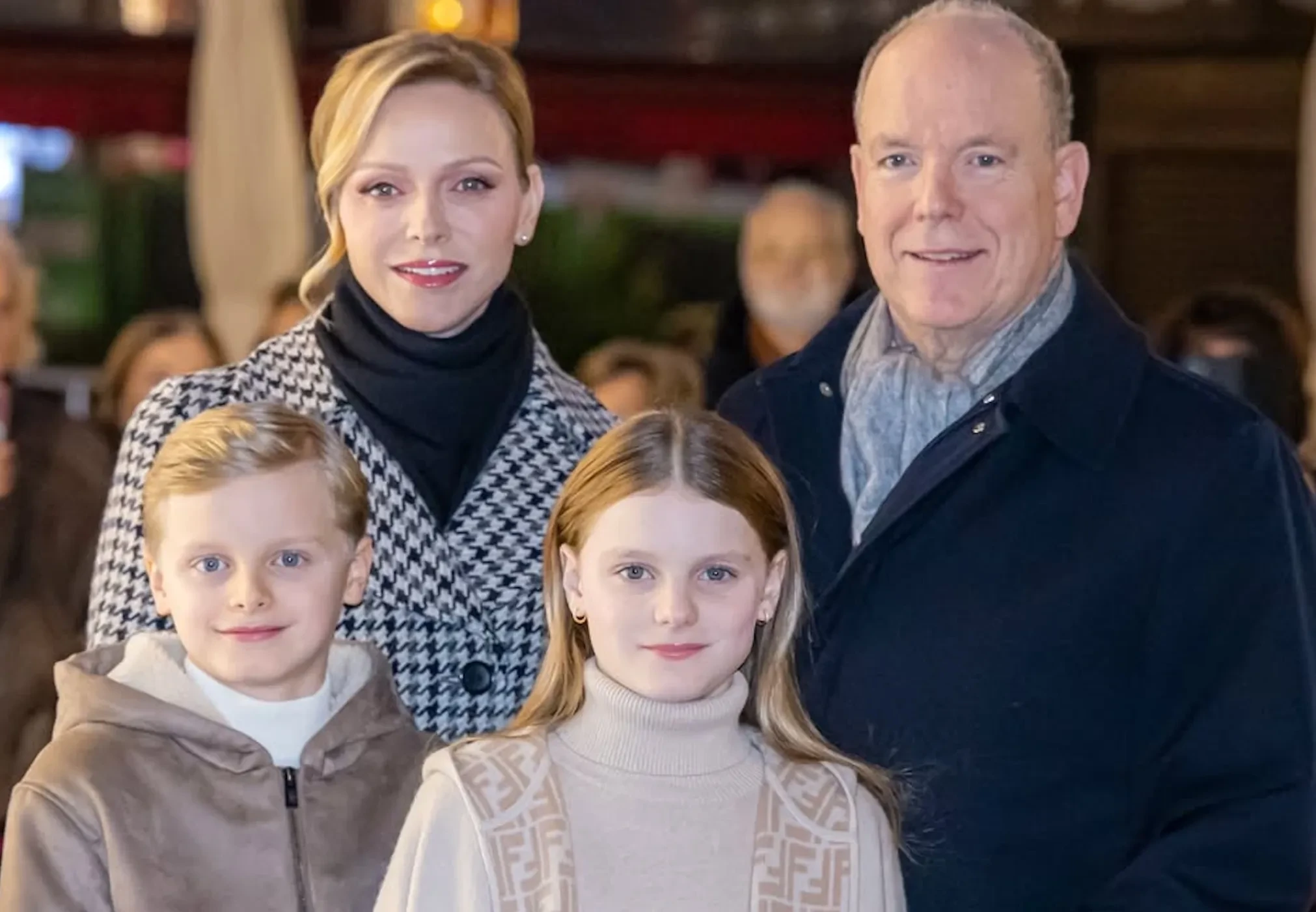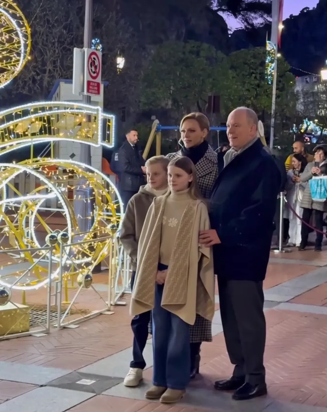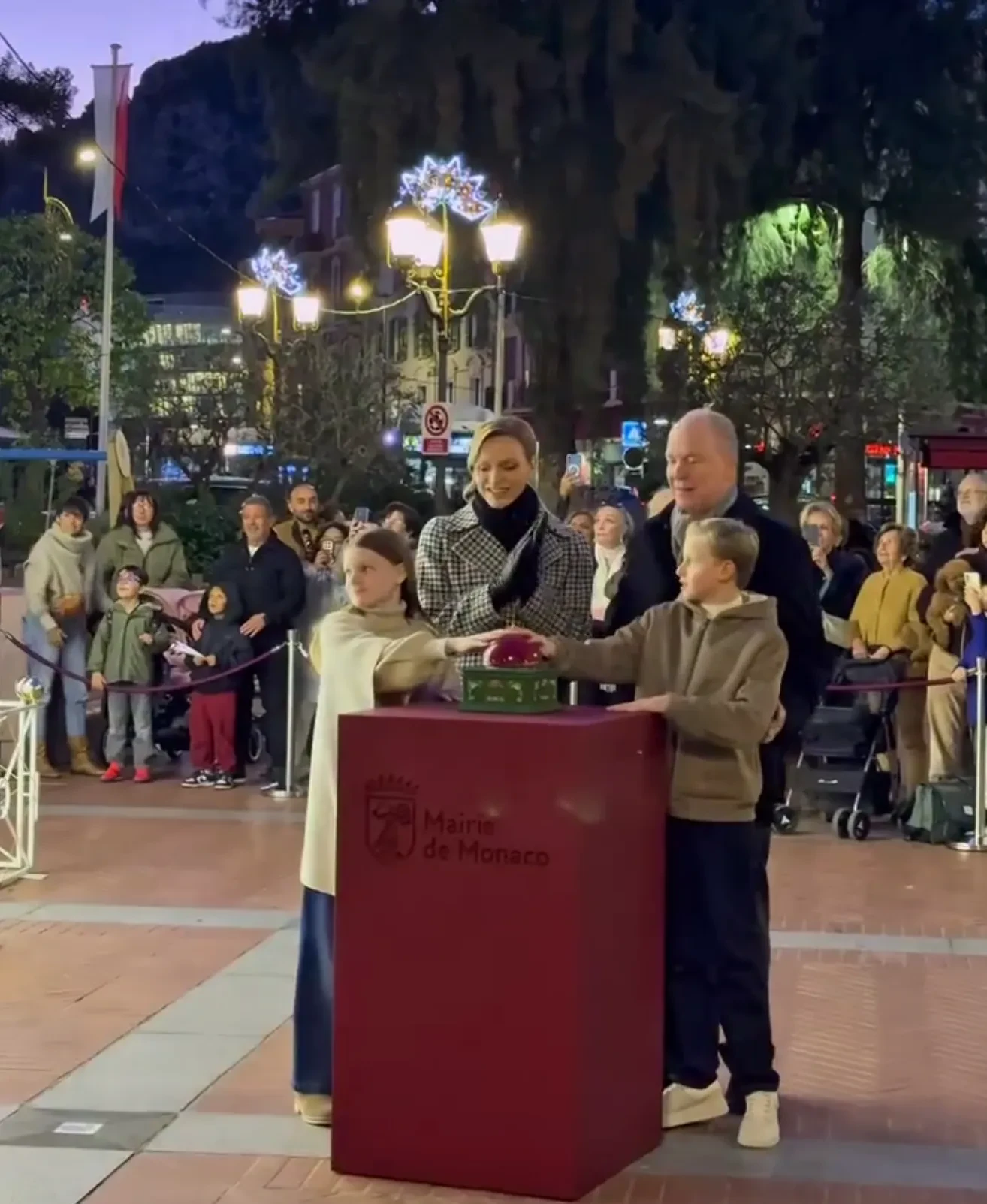 47-летняя Шарлен появилась на мероприятии в пальто в гусиную лапку, дополнив образ кожаной обувью и перчатками. 10-летняя принцесса Габриэлла позировала в накидке Fendi, а её брат-близнец, наследный принц Жак, — в толстовке Armani. Дети нажали на кнопку, включив иллюминацию по всему княжеству, что означает официальное начало праздничного сезона в Монако и сопутствующих ему мероприятий.