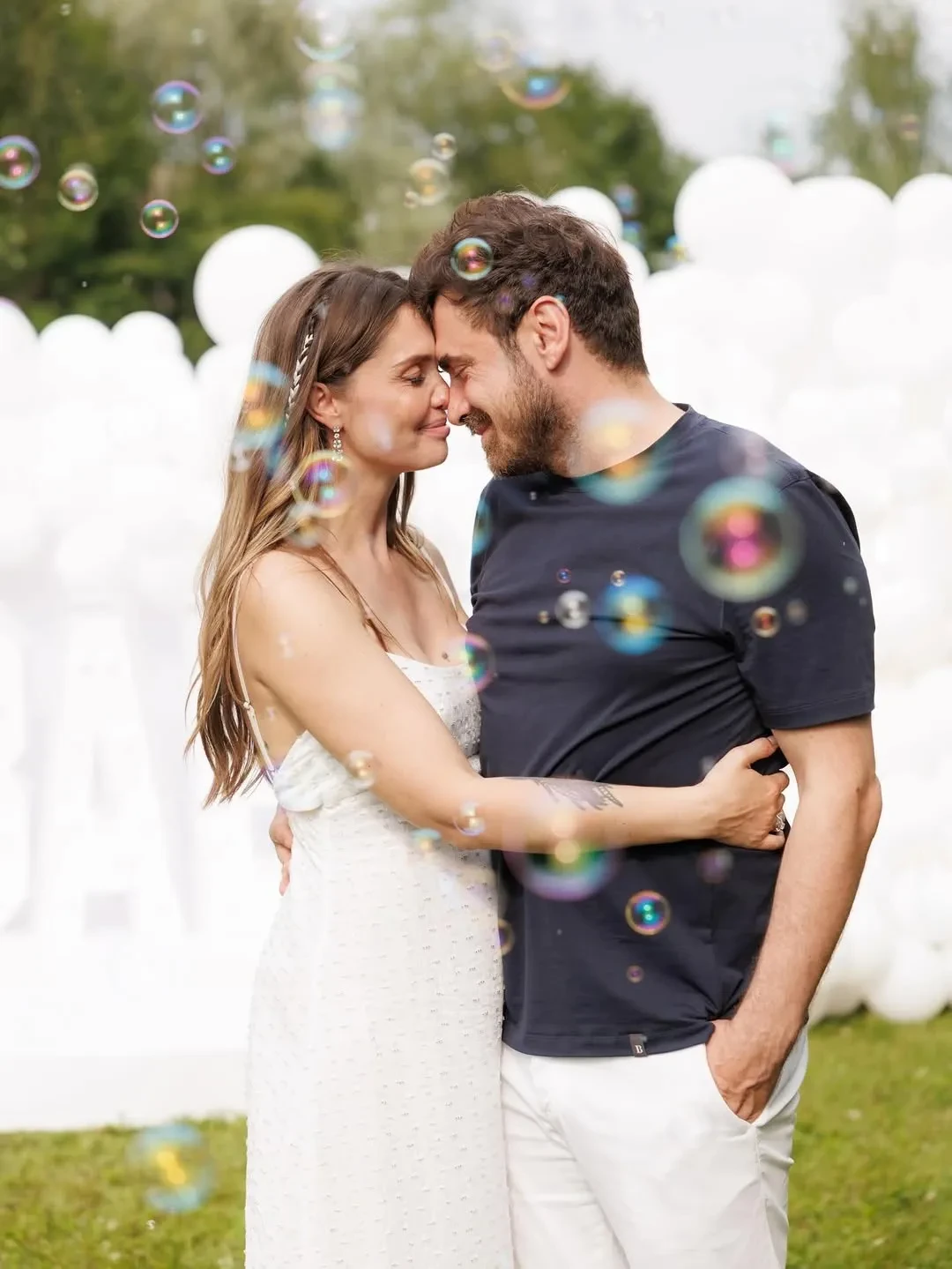 О том, что влюблённые станут родителями, заговорили в апреле. Муцениеце скрывала беременность долгое время и даже отрицала её, и лишь спустя несколько месяцев, когда скрывать изменившуюся фигуру стало уже сложно, официально подтвердила информацию.