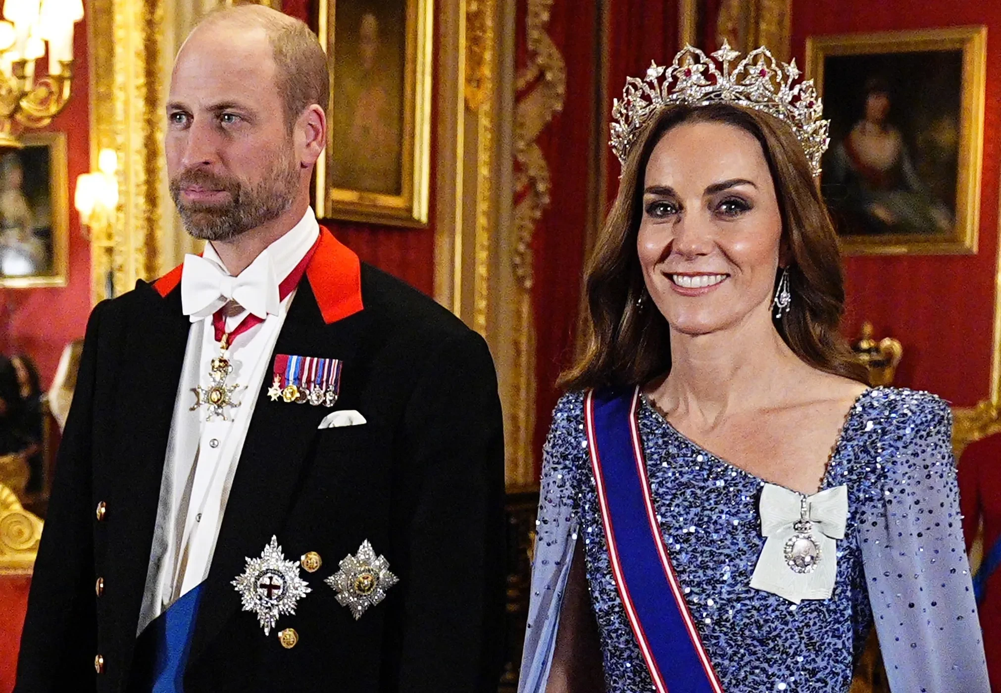 Принц Уильям и Кейт МиддлтонПринц Уильям и Кейт МиддлтонКейт МиддлтонПринц Уильям, король Карл III, президент Германии и другие мужчины на банкете носили белые бабочки — по дресс-коду мероприятия, а женщины блистали в вечерних нарядах.