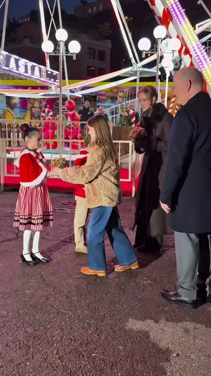 Князь Монако Альбер II и княгиня Шарлен с детьми открыли рождественскую деревню в столице княжества.