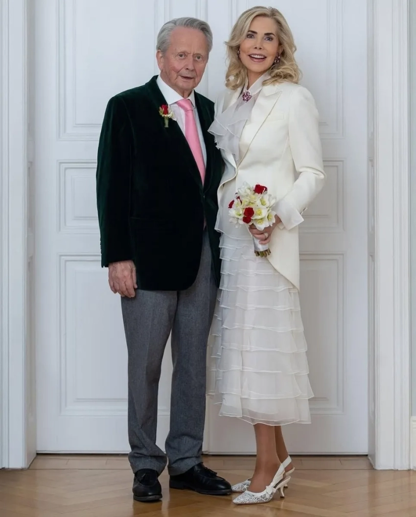 Пара провела закрытую церемонию в Зальцбурге, недалеко от фамильной резиденции миллиардера в Целль-ам-Зее. Невеста была в белом многослойном шифоновом платье с бантом на талии. Её образ дополняли украшенные драгоценными камнями белые босоножки на ремешках. Привлекало внимание и её обручальное кольцо с бриллиантами разного размера.