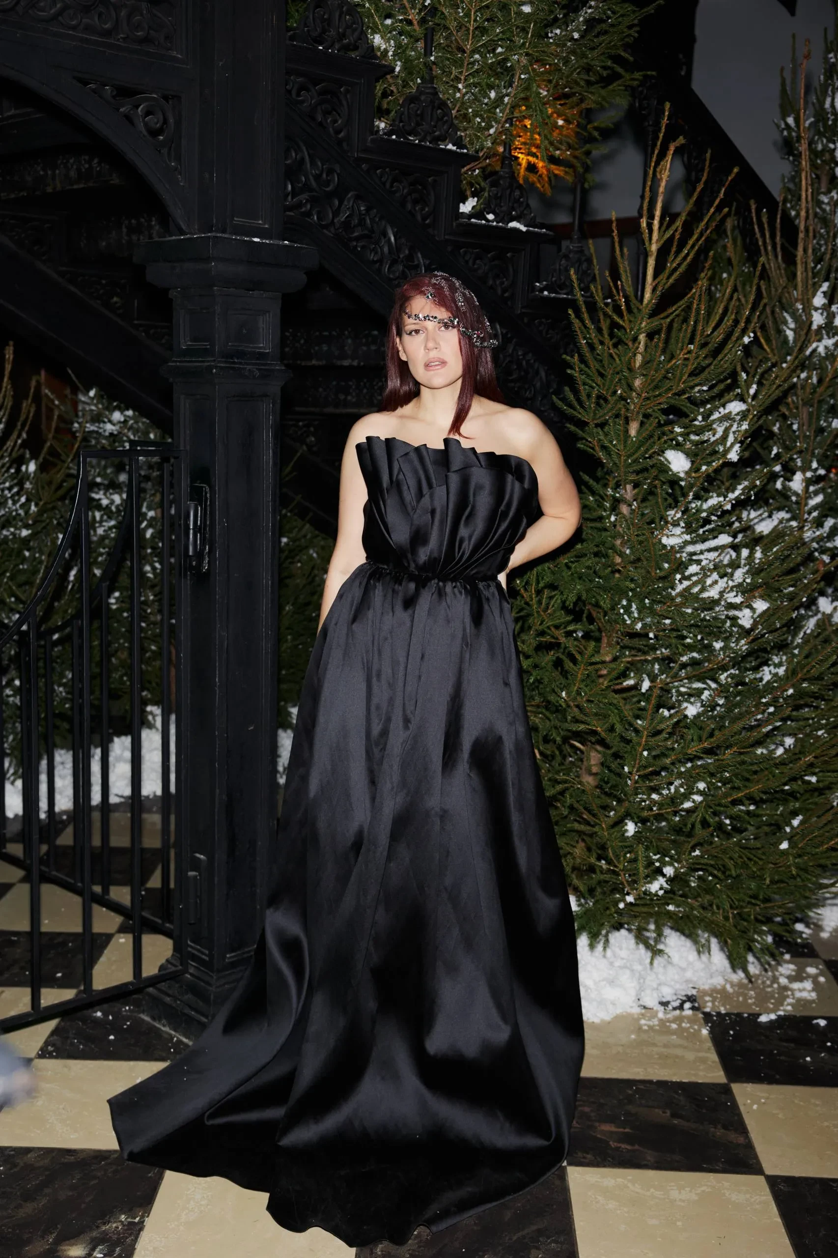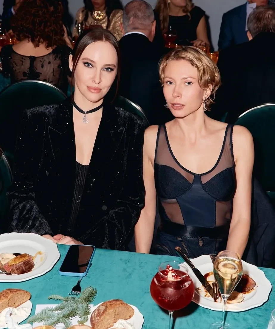 50-летняя Яна Рудковская блистала на вечере в лиловом платье Ermanno Scervino и с мини-сумкой Dior, а 27-летняя Алеся Кафельникова пришла в меховом топе от Александра Терехова. Платья бренда дизайнера Sashaverse также выбрали: жена миллиардера Зияда Манасира Виктория и Снежанна Георгиева, которая дополнила наряд белой шубой Belik.
