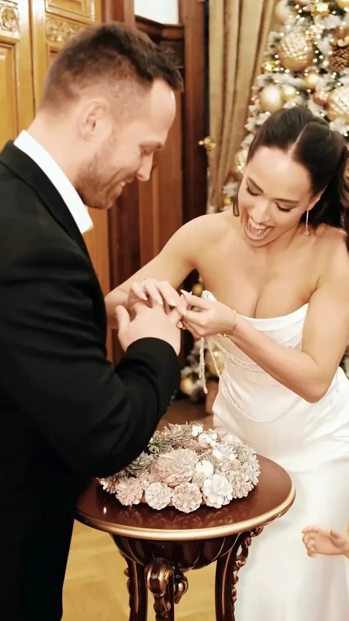 Церемония прошла в Грибоедовском ЗАГСе Москвы в кругу друзей и близких. Жених выбрал классический чёрный костюм, а невеста появилась в корсетном белом платье. К алтарю пару сопровождала четырёхлетняя дочь Алексея от предыдущих отношений Милана.