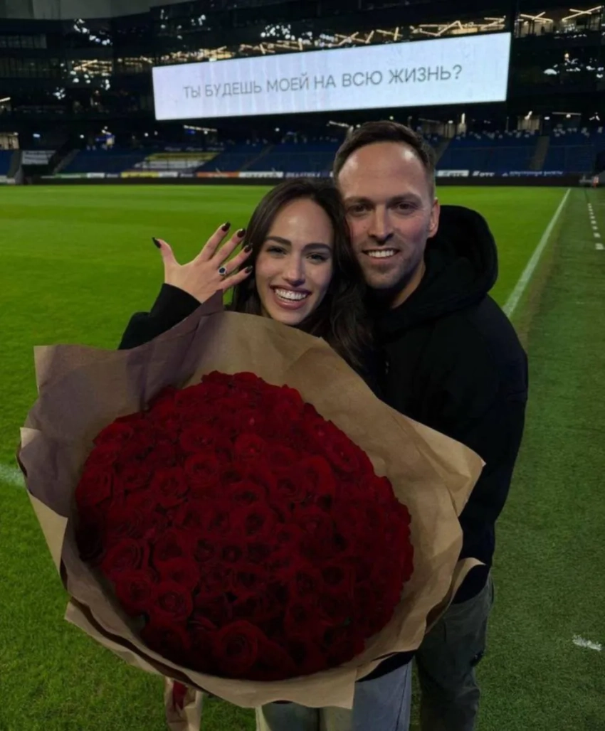 Аня Покров и Вера БондареваАня Покров, Алексей Столяров, Вера Бондарева, Артур БабичНапомним, Столяров сделал предложение Бондаревой в конце марта. Он подготовил для возлюбленной сюрприз на стадионе "ВТБ Арена", где признание прозвучало под аккомпанемент Мари Краймбрери.