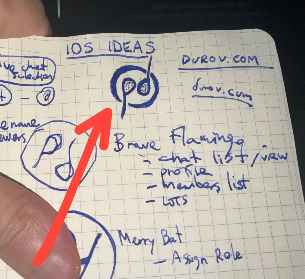Фото из телеграм-канала Павла ДуроваДругие записи Дурова на листе, по всей видимости, являются его идеями для мобильного приложения, включая концепцию чата с профилями участников. Он также обыграл тему "программы" в адресе сайта durov.cum, где название домена "cum" переводится как "сперма".