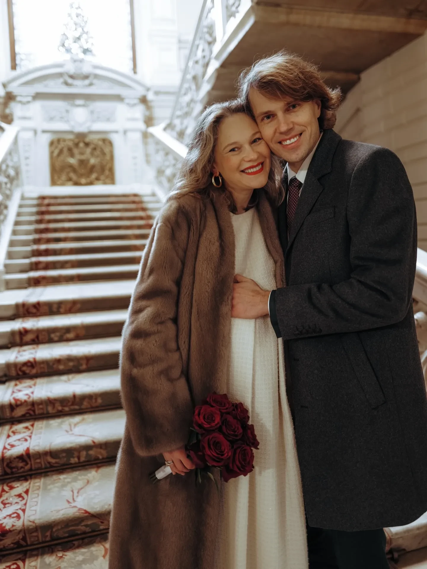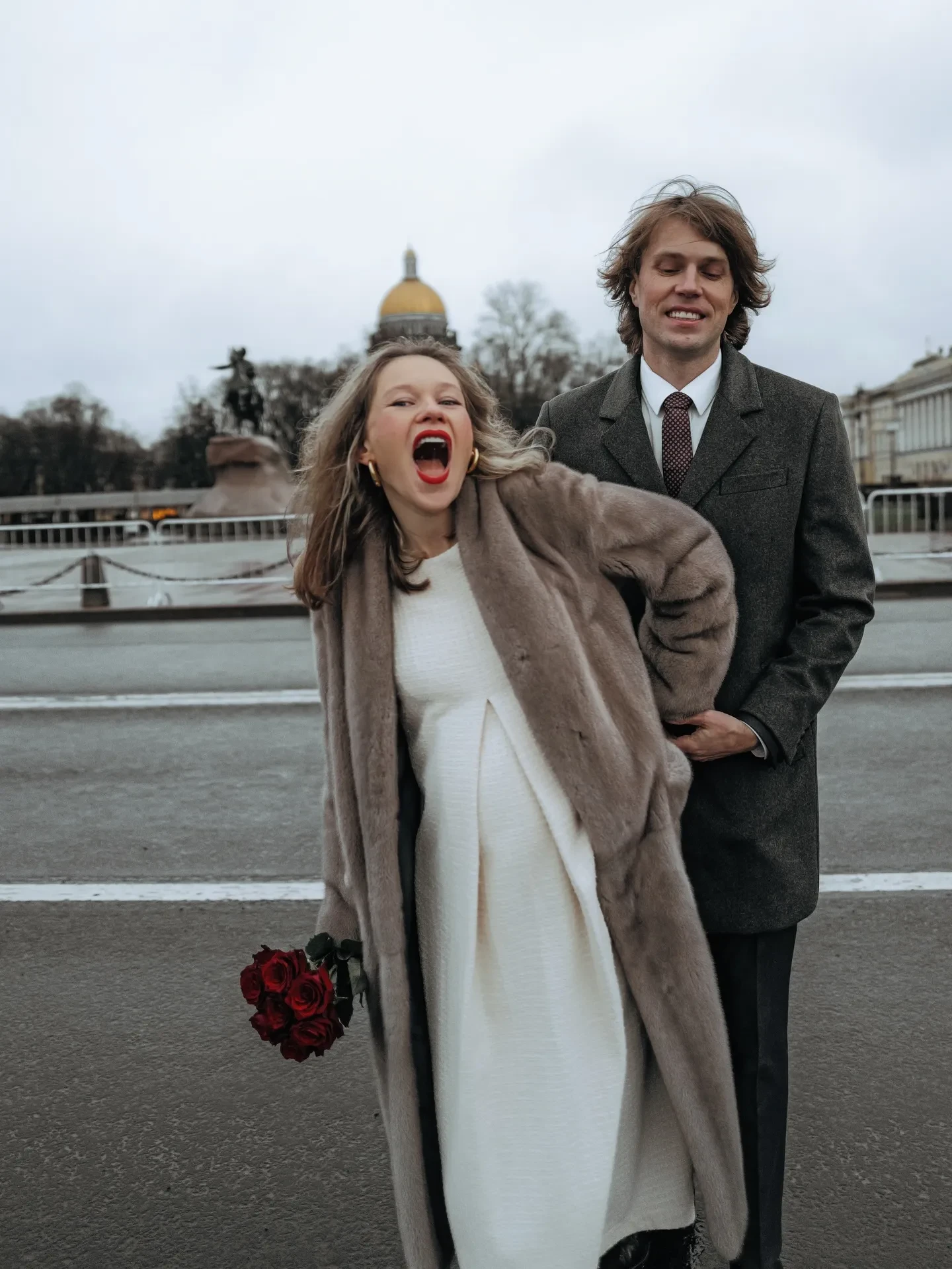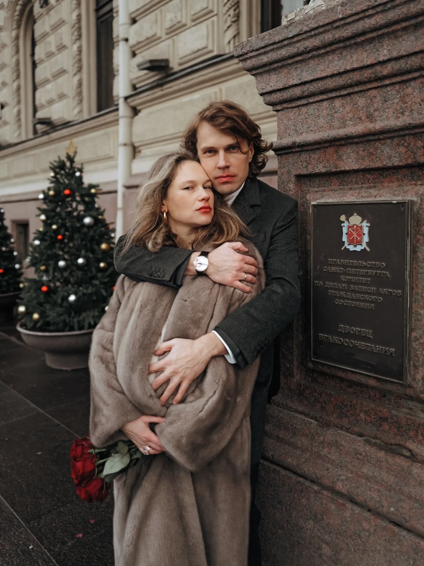 Пара зарегистрировала брак в Дворце бракосочетания № 1 в Санкт-Петербурге. Невеста была в белом платье с вафельной текстурой, чёрных ботильонах и шубе, а жених — в сером костюме с удлинённым пиджаком. "В этом году я успела всё!" — подписала публикацию Янковская.