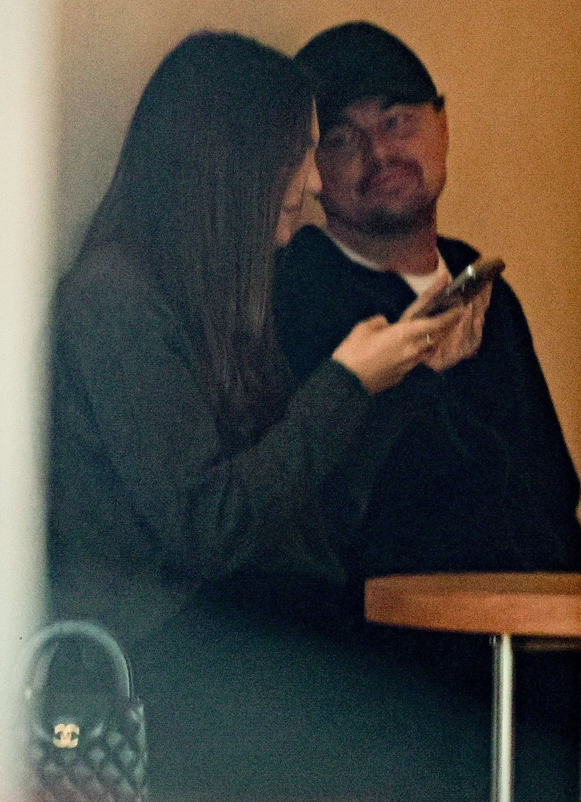На снимке ДиКаприо, как обычно, в кепке, с улыбкой смотрит на Черетти, пока та сидит в телефоне.