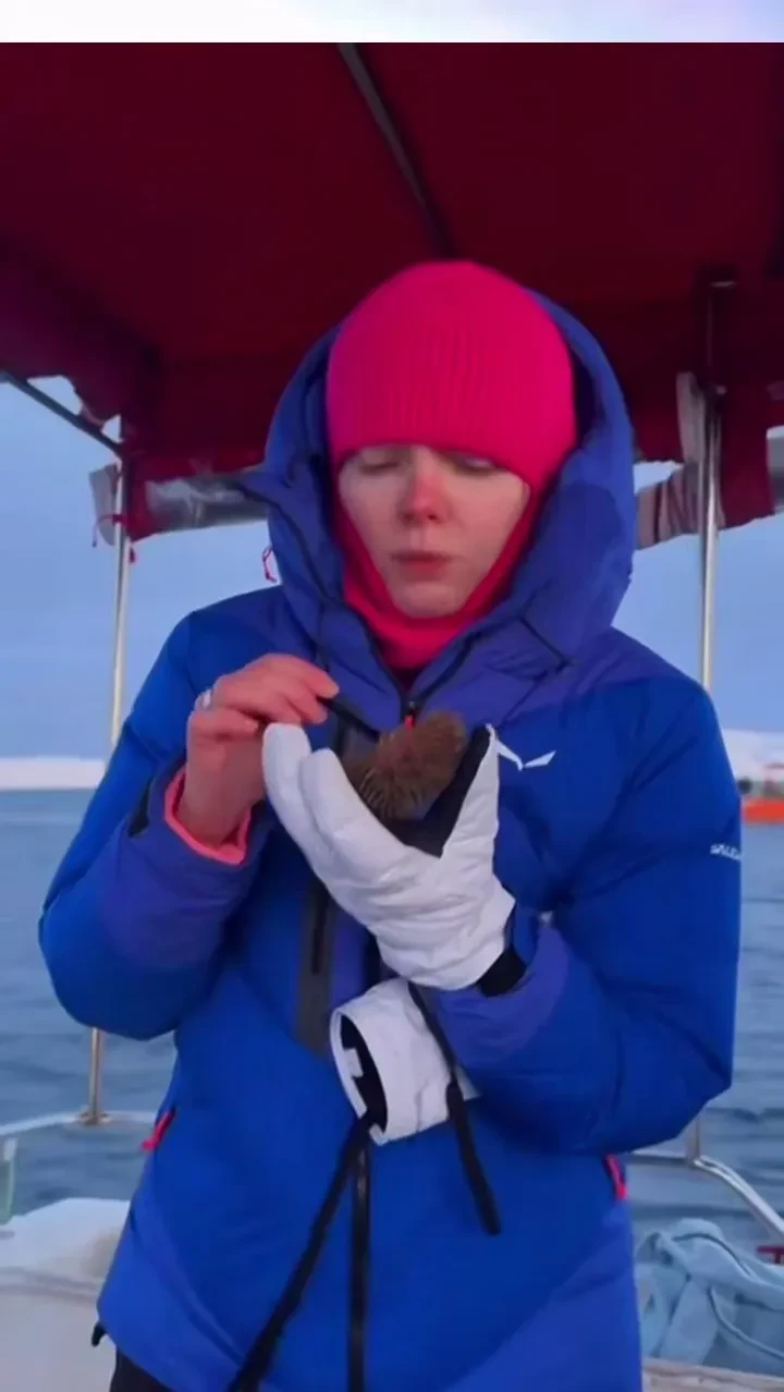 Актриса показала, как они с Матвеевым катаются на снегоходах и лыжах по тундре, пробуют свежевыловленных морских ежей, наблюдают за полярным сиянием и выходят в море на лодке, чтобы понаблюдать за китами. В посте она также пообещала, что вернётся сюда с семьёй снова в другое время года.