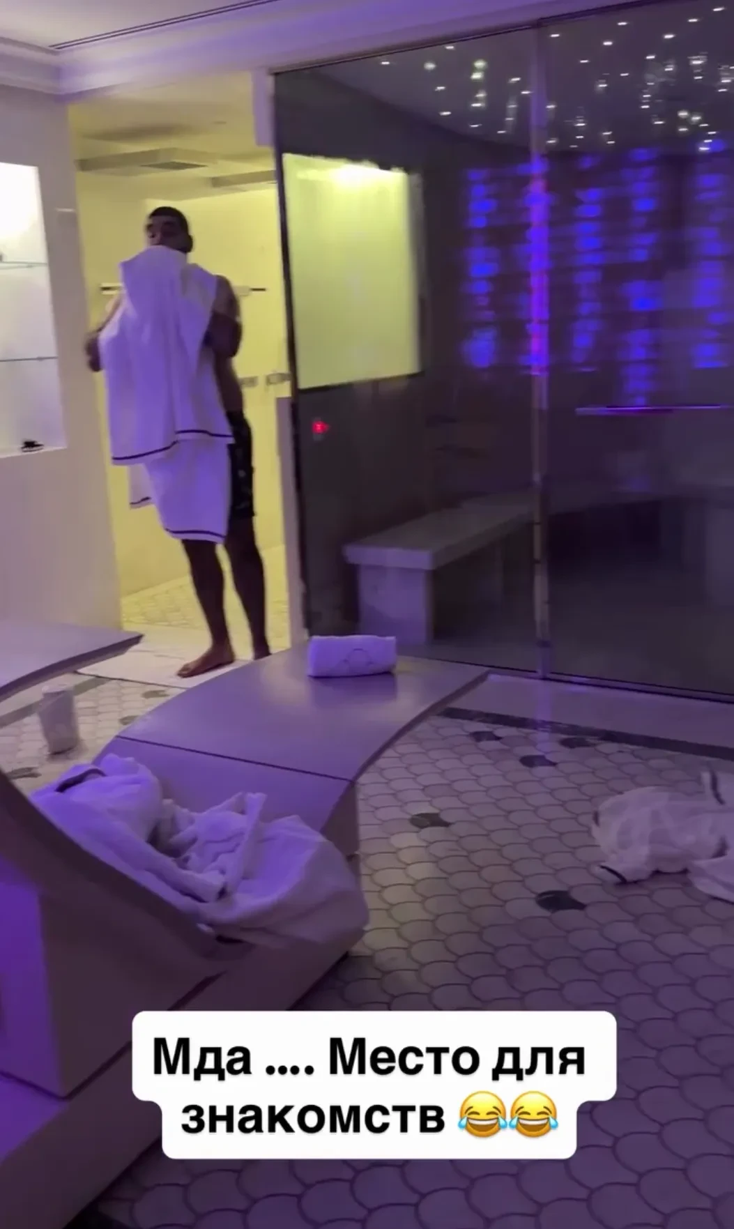 Скриншот из сторис* Ксении СобчакВ душевой зоне Ксении не понравилось то, что она общая — для женщин и мужчин (один из них даже попал к ней в кадр), а само пространство для принятия душа рассчитано на двух человек и не имеет перегородки. Там есть несколько вариантов леек, но нет самой обычной, к которой все привыкли. Ксения показала ещё одну отдельную душевую с тропическим душем, который она назвала "дико неудобной хренью" — там тоже нет привычной для неё лейки. "148 вариантов душа — сверху, отсюда, ещё какие-нибудь струи, но ни одного нормального полноценного душа", — заметила Собчак.