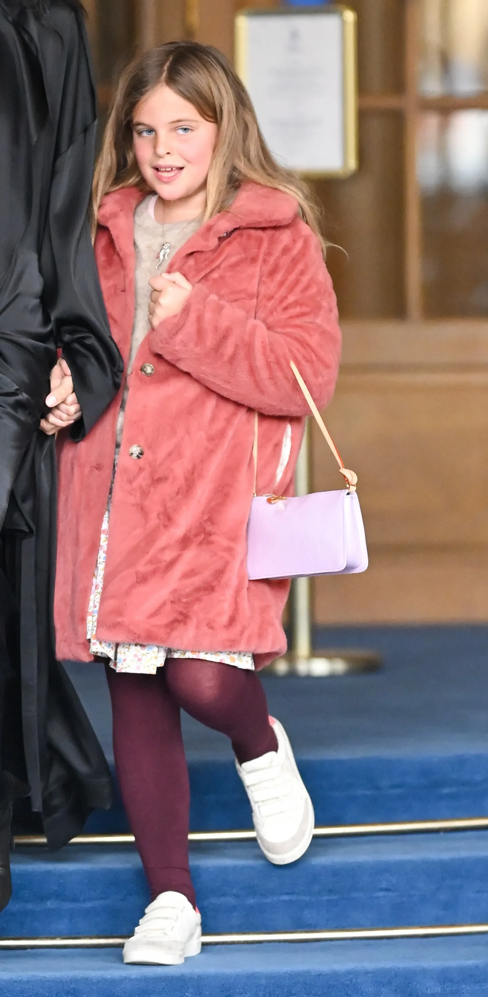 В то же время Лея была облачена в шубу поверх юбки с цветочным принтом и колготки. При этом в руках она держала лакированную сиреневую мини-сумочку Louis Vuitton из лимитированной коллекции Monogram Vernis по цене около двух тысяч долларов.
