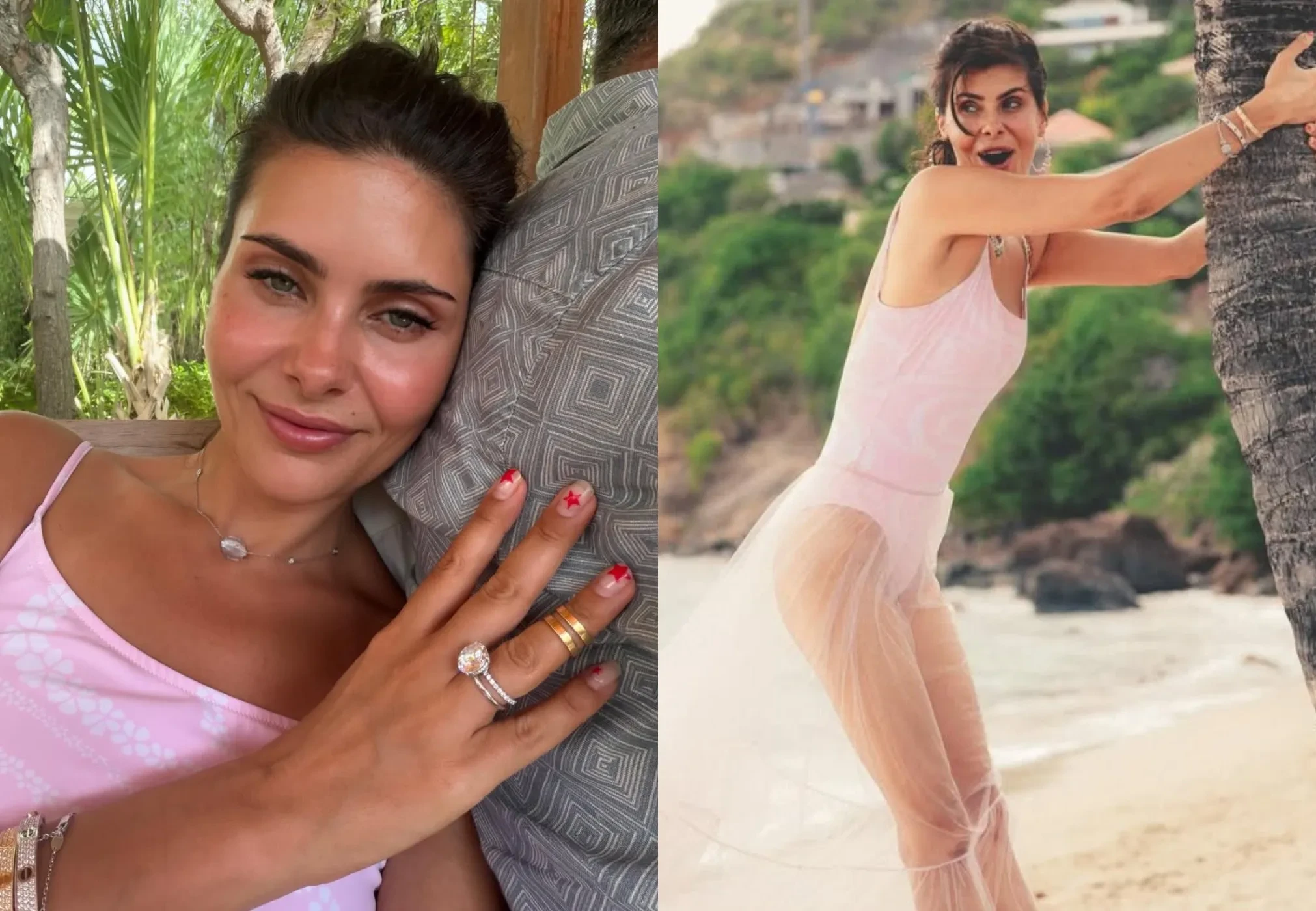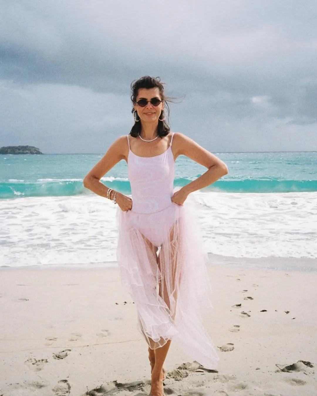 На фото Оболенцева позирует в купальнике Chanel и прозрачной юбке на острове Сен-Барт, где пара год назад сыграла свадьбу. "Любовь — это пятое время года. А.А.А.", — подписала фото Надежда.