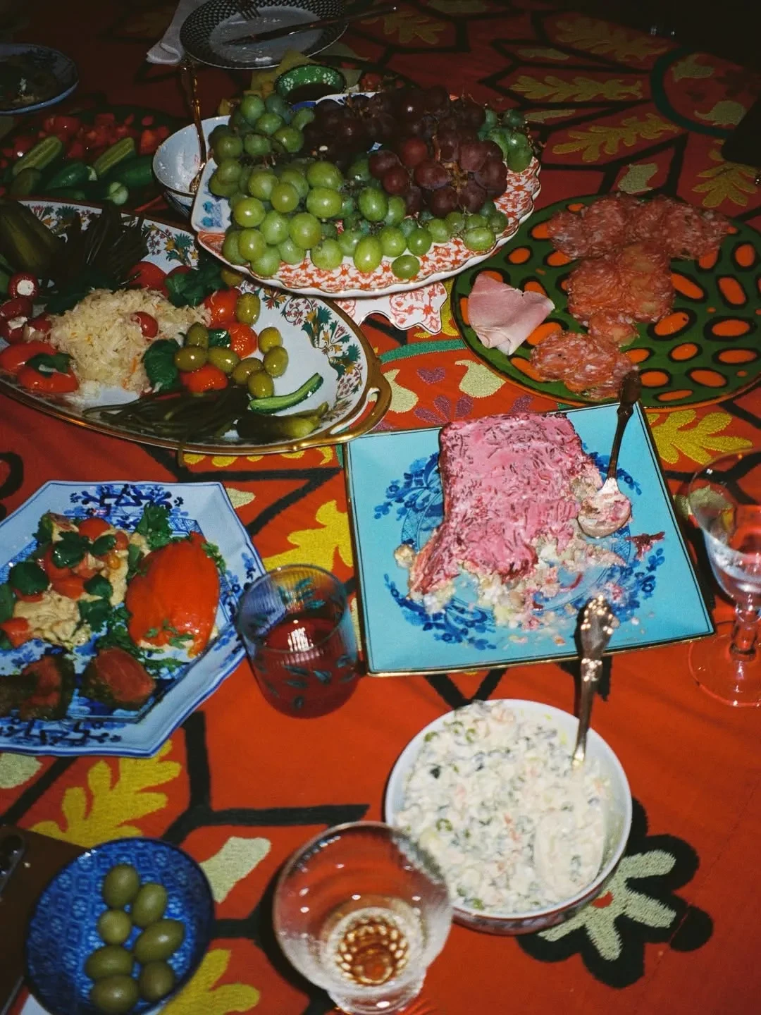 57-летняя Бондарчук на день рождения мужа надела серебристое мини-платье с чёрными колготками и балетками. На празднике именинник и гости танцевали под "народные" хиты "Матушка-земля" и "Эх, раз, да ещё раз", угощались салатом "Шуба" и бутербродами с колбасой и много фотографировались.