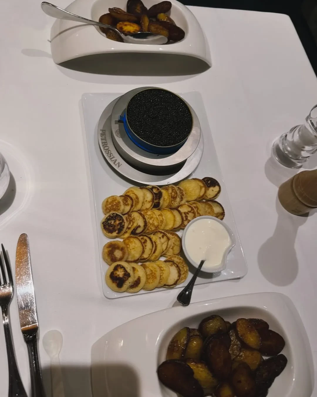 На фото Романова и Доронин позируют перед ужином в ресторане. В честь праздника модель надела короткое чёрное платье, золотой браслет, украшения с бриллиантами и шубу, дополнив образ красной помадой и сумкой Hermes. Она также показала интерьер отеля, в котором остановилась пара, фото в горнолыжных костюмах, праздничный стол с чёрной икрой и подарок от возлюбленного — большой букет красных роз.