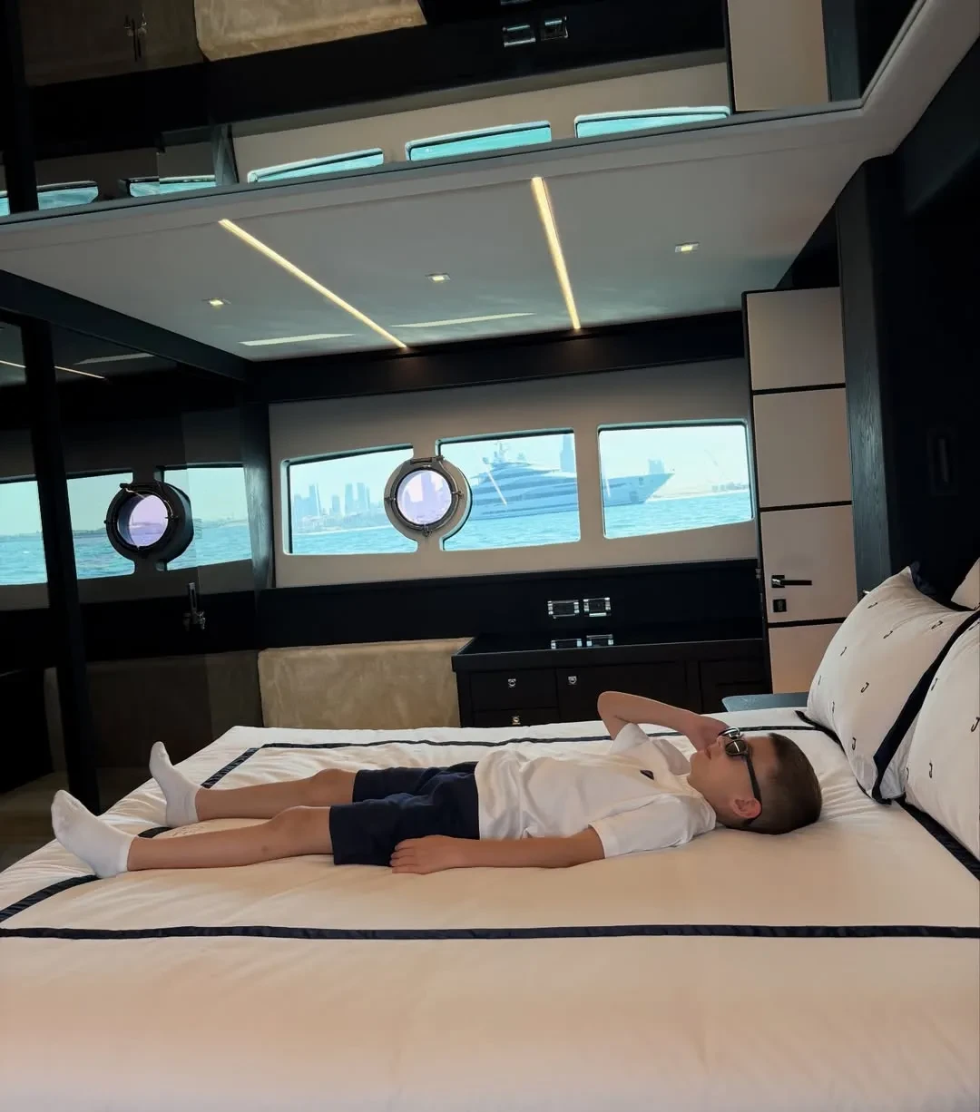 42-летняя Виктория Лопырёва отдыхает на яхте в Дубае вместе с семилетним сыном Марком Лионелем, которого она родила от бизнесмена Игоря Булатова. Снимками из путешествия модель поделилась в соцсетях.