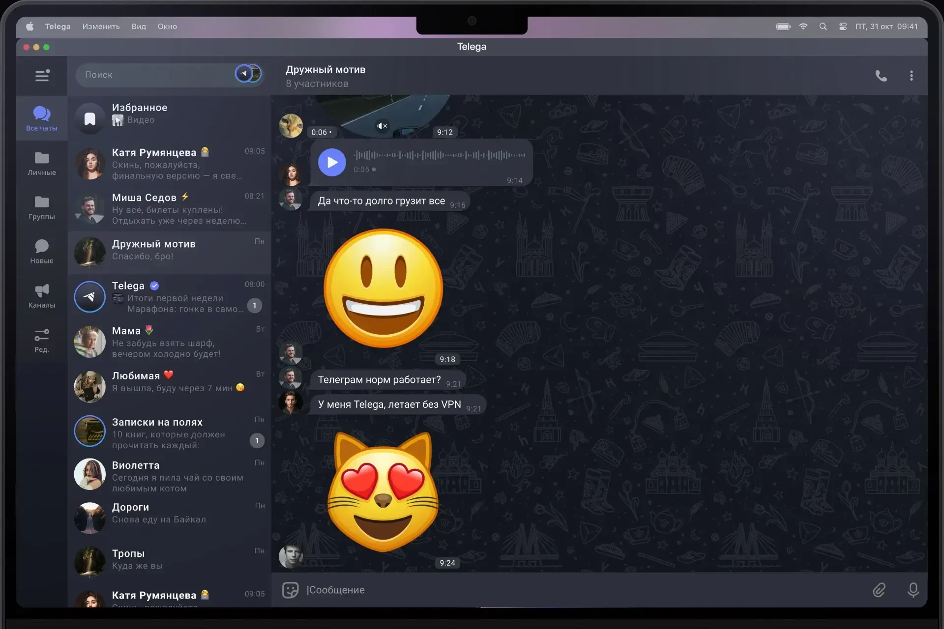 Интерфейс практически идентичен Telegram. Чаты и контакты синхронизируются автоматически, вход — по номеру телефона, звонки работают без VPN. Для обычного пользователя разница почти незаметна. Будто это Telegram, только под другим названием.