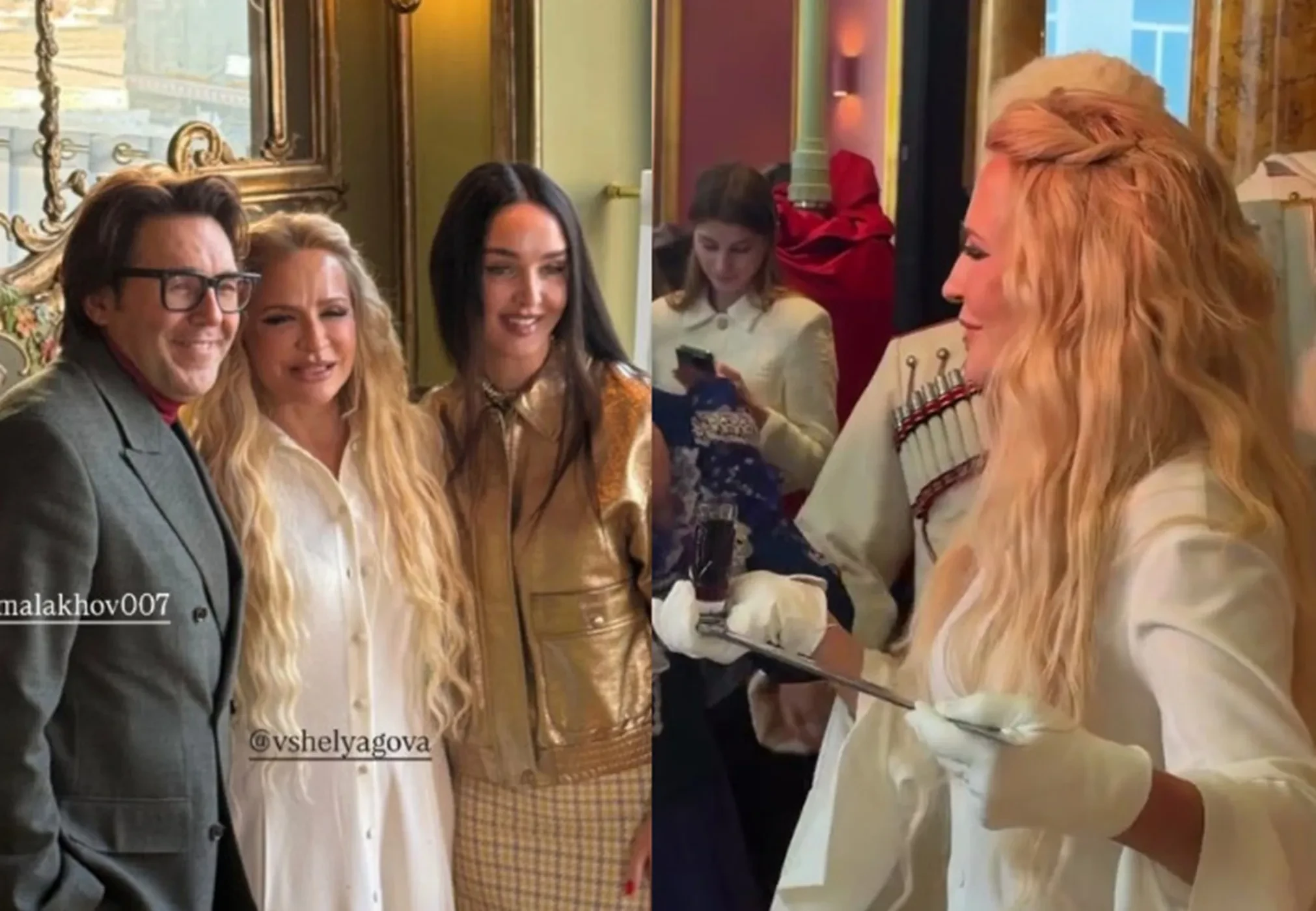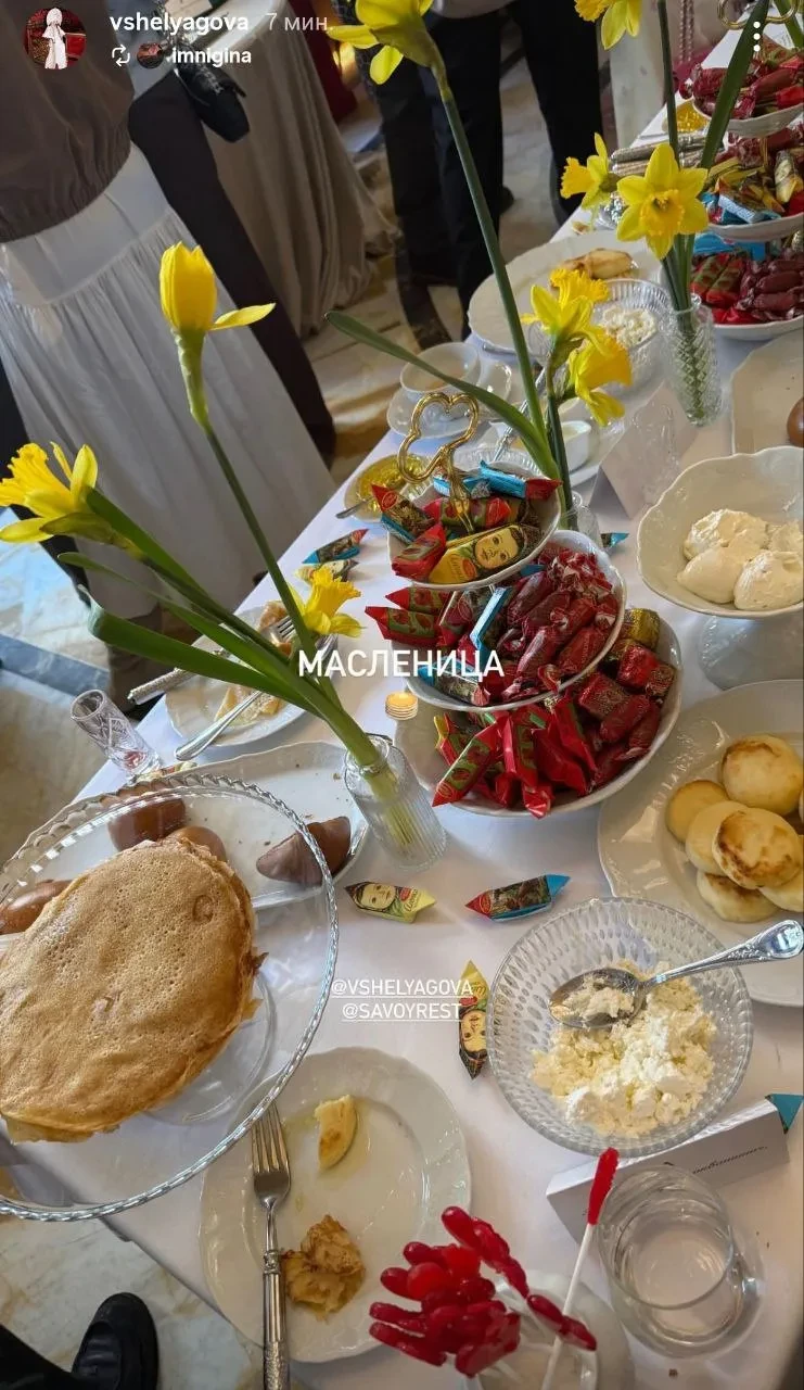 Блины, казачий хор и "жёлтый" дресс-код: Яна Рудковская, Андрей Малахов, Кристина Потупчик на Масленице Виктории Шеляговой в Savoy