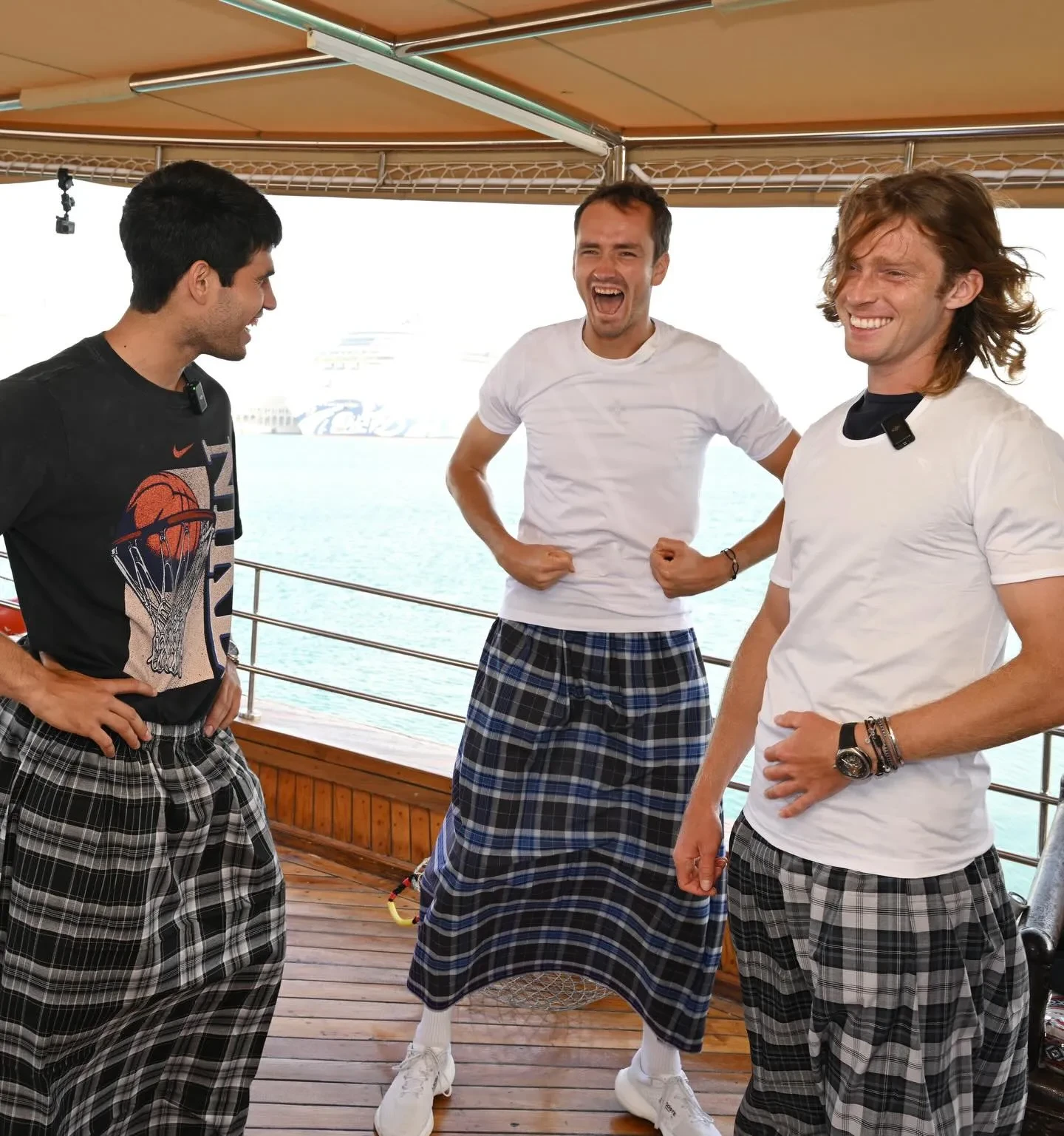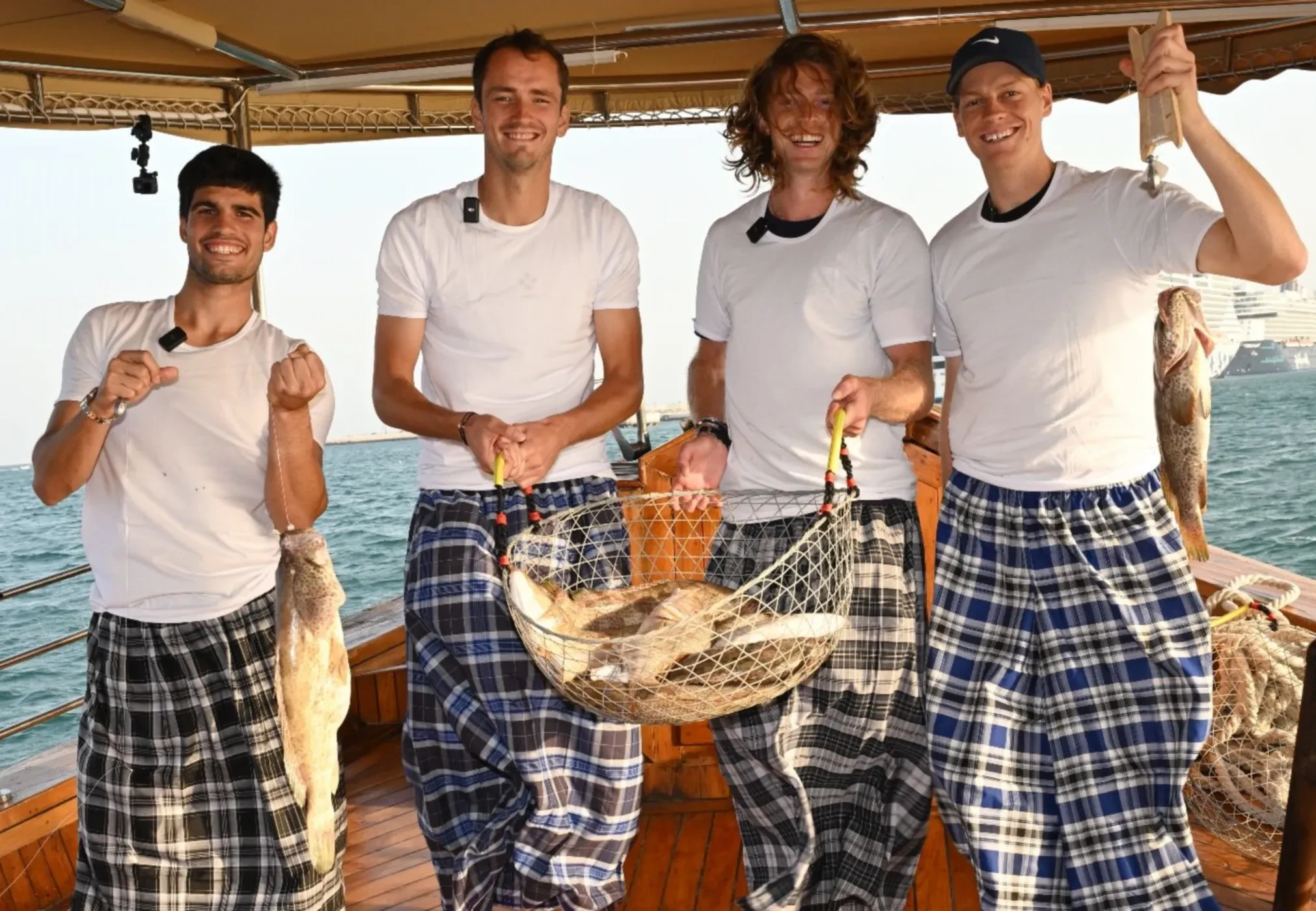Перед тем как спортсменам провели инструктаж, они облачились в одинаковые наряды из белых футболок и клетчатых фут (мужская юбка, распространённая в арабских странах. — Прим. ред.). В противовес страстям на корте, улов удался у всех. "Это не ИИ, а просто парни, которые рыбачат в старом добром катарском стиле", — с юмором подписали организаторы пост.