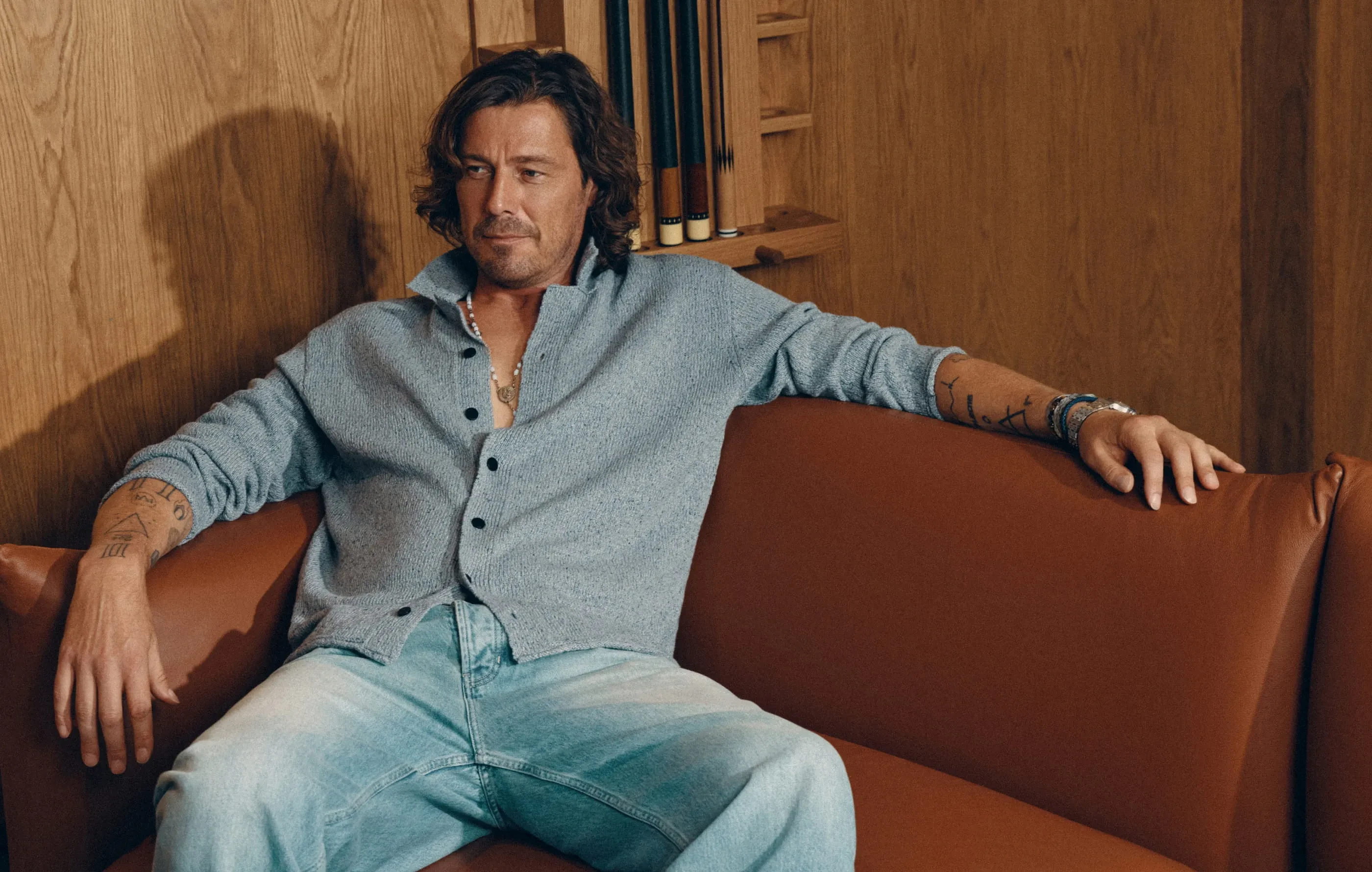Марат Сафин стал лицом бренда одежды IDOL. 46-летний теннисист снялся в рекламной кампании марки, примерив образы из новой коллекции. На снимках Сафин позирует в кожаной куртке, кардигане, коричневой рубашке, костюме, джинсах и других вещах.
