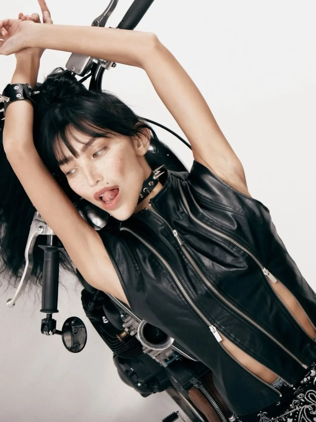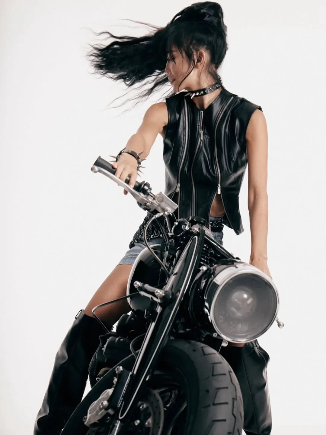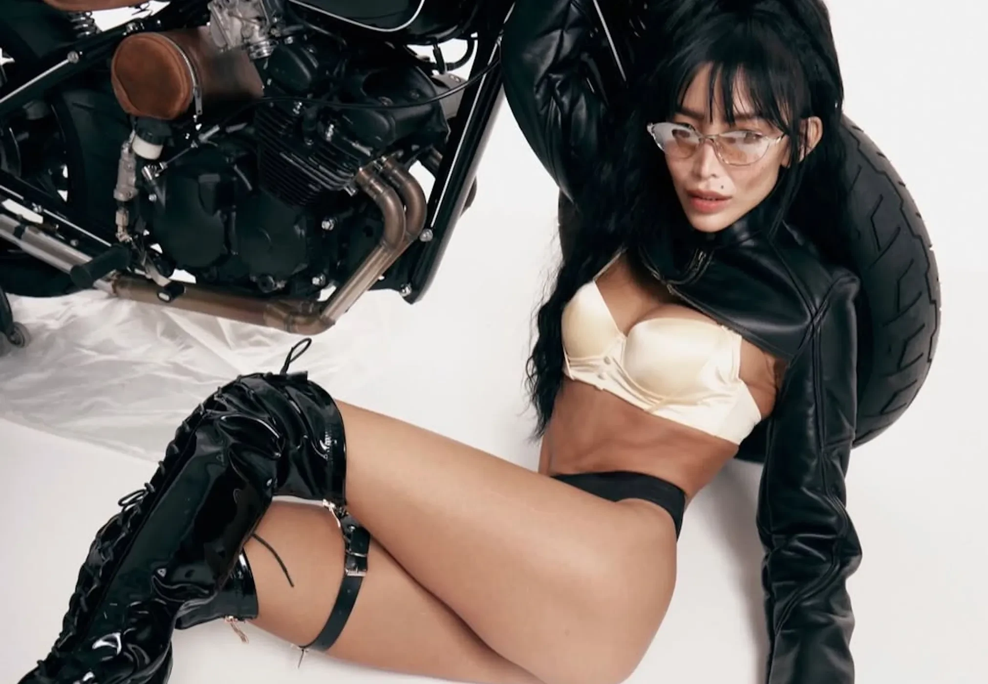 34-летняя супруга Александра Цекало Дарина Эрвин снялась в новой откровенной фотосессии. На снимках модель и художница позирует на мотоцикле в нижнем белье, кожаной куртке, топе и сапогах на каблуках.