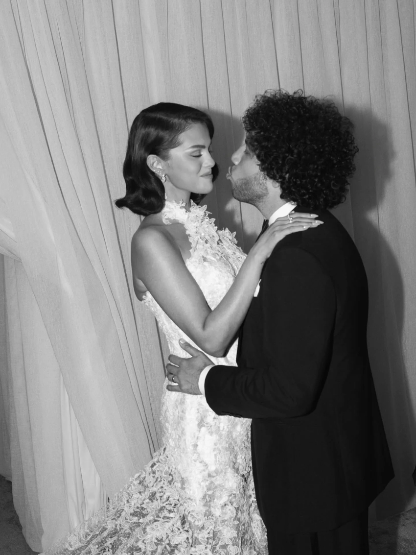 Бенни Бланко и Селена ГомесОсенью прошлого года Селена Гомес и Бенни Бланко, которые начали встречаться в 2023 году, сыграли свадьбу. На церемонии, прошедшей в условиях секретности в Санта-Барбаре, невеста сменила три свадебных образа Ralph Lauren, а среди гостей были такие знаменитости, как Тейлор Свифт, коллеги Селены по сериалу "Убийства в одном здании" Стив Мартин и Мартин Шорт, Зои Салдана, Пэрис и Ники Хилтон, а также Эд Ширан и другие.