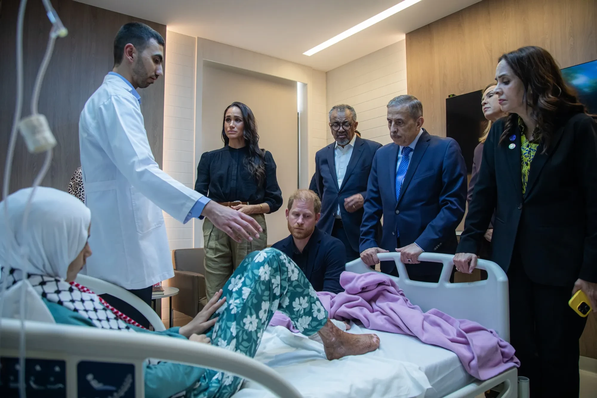 После круглого стола герцоги Сассекские посетили молодёжный центр QuestScope в лагере беженцев, а затем вместе с делегацией ВОЗ посетили специализированную больницу в столице страны, Аммане, где встретились с 14-летней девочкой-пациенткой из Газы c ожогами.
