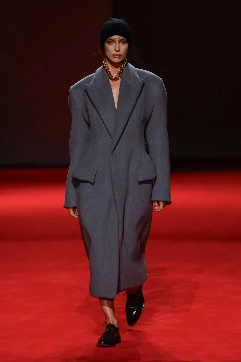 Неделя моды в Милане: Ирина Шейк вышла на подиум в пальто на "голое тело"