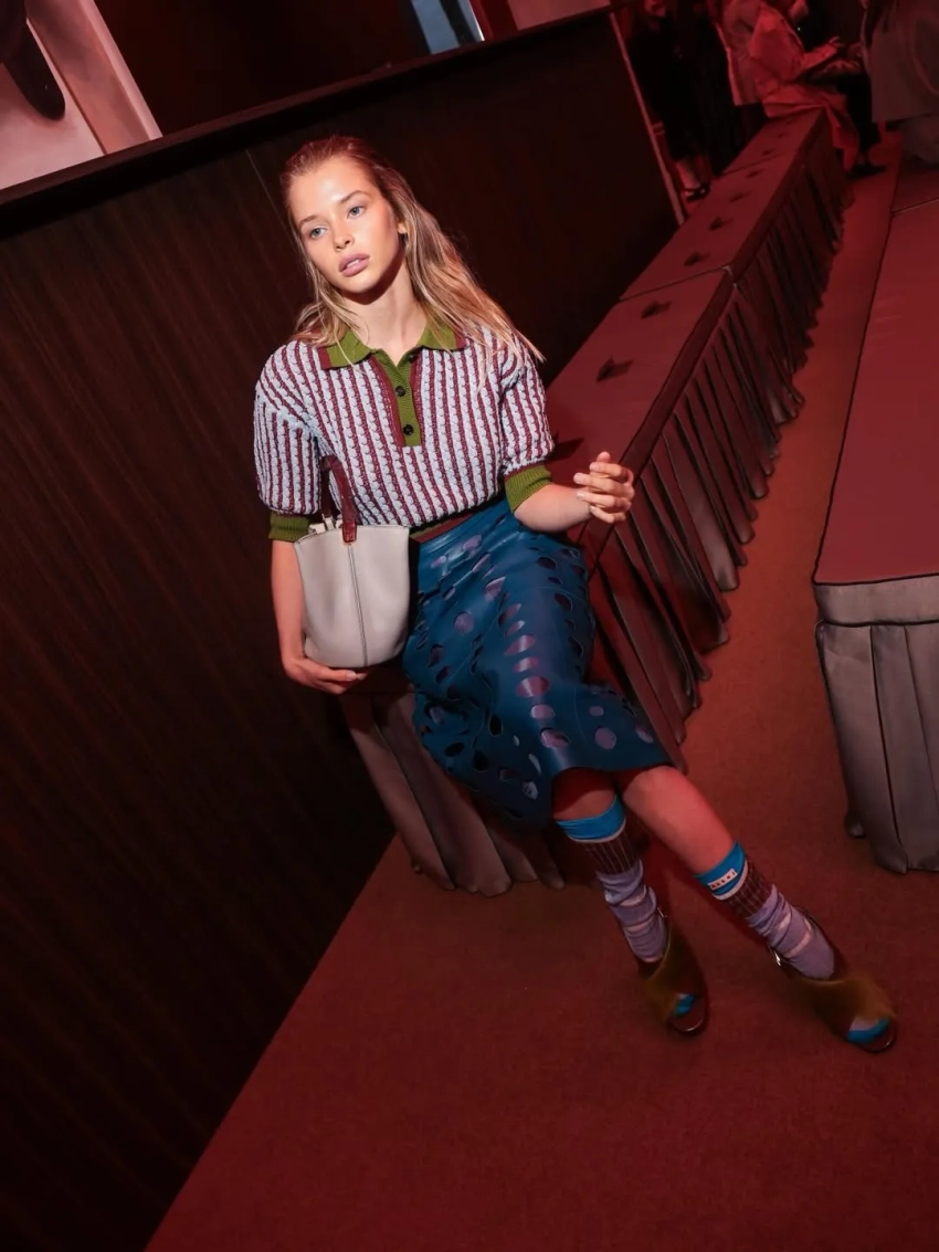 Блогерша Алла Брулетова пришла на показ Moschino в"мешке из-под картошки" и выгуляла яркие образы на других шоу, включая Marni. На показ этого бренда пришла и Ксения Шипилова. Также она посетила показ Enfants Riches Deprimes в Париже и примерила коллекцию Versace.