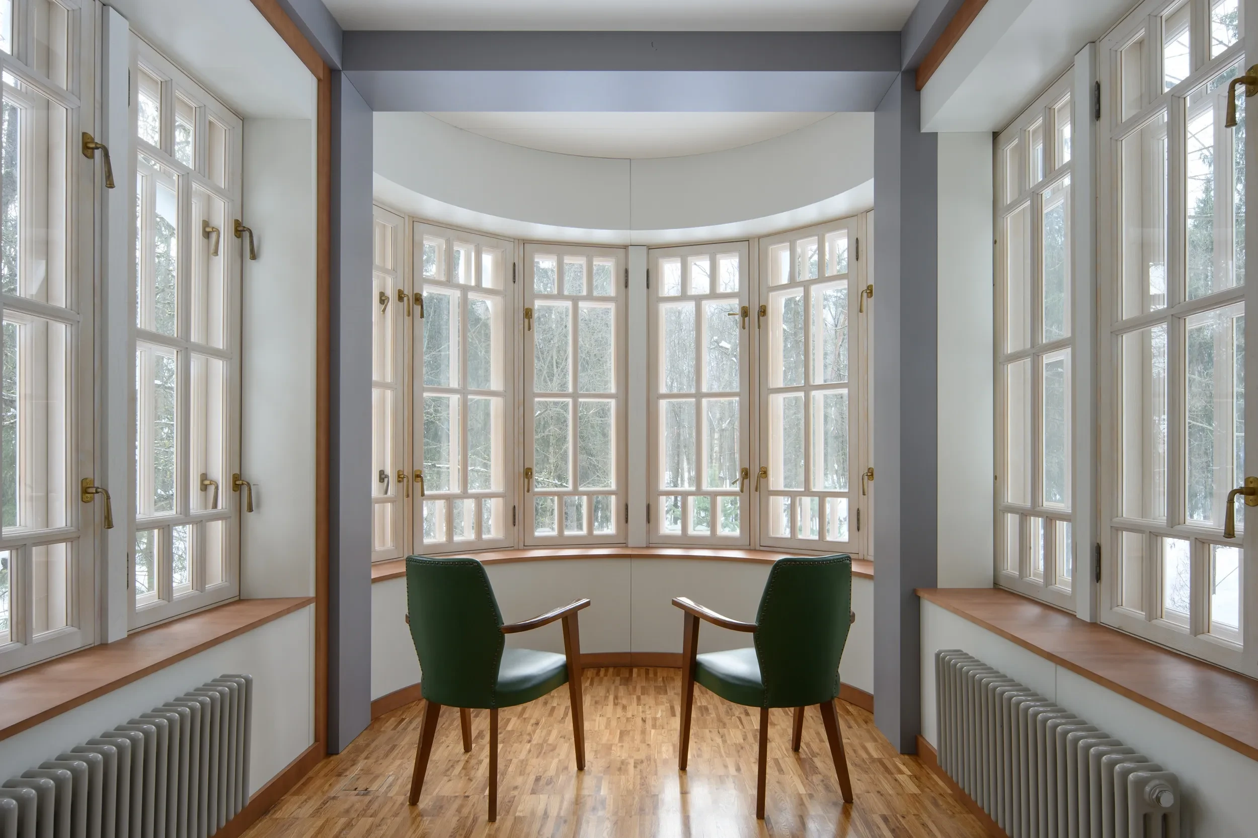В конце 90-х годов здание сильно пострадало от частных съёмщиков и находилось в аварийном состоянии. Чтобы сохранить его, необходимо было фактически подвесить дом в воздухе, залить под него фундамент и укрепить конструктив внутренним каркасом из бруса. Для центрального зала художник Алексей Лука создал инсталляцию "Писательские столы" — они стали центральным арт-объектом и местом для экспонирования архивных документов выставок.