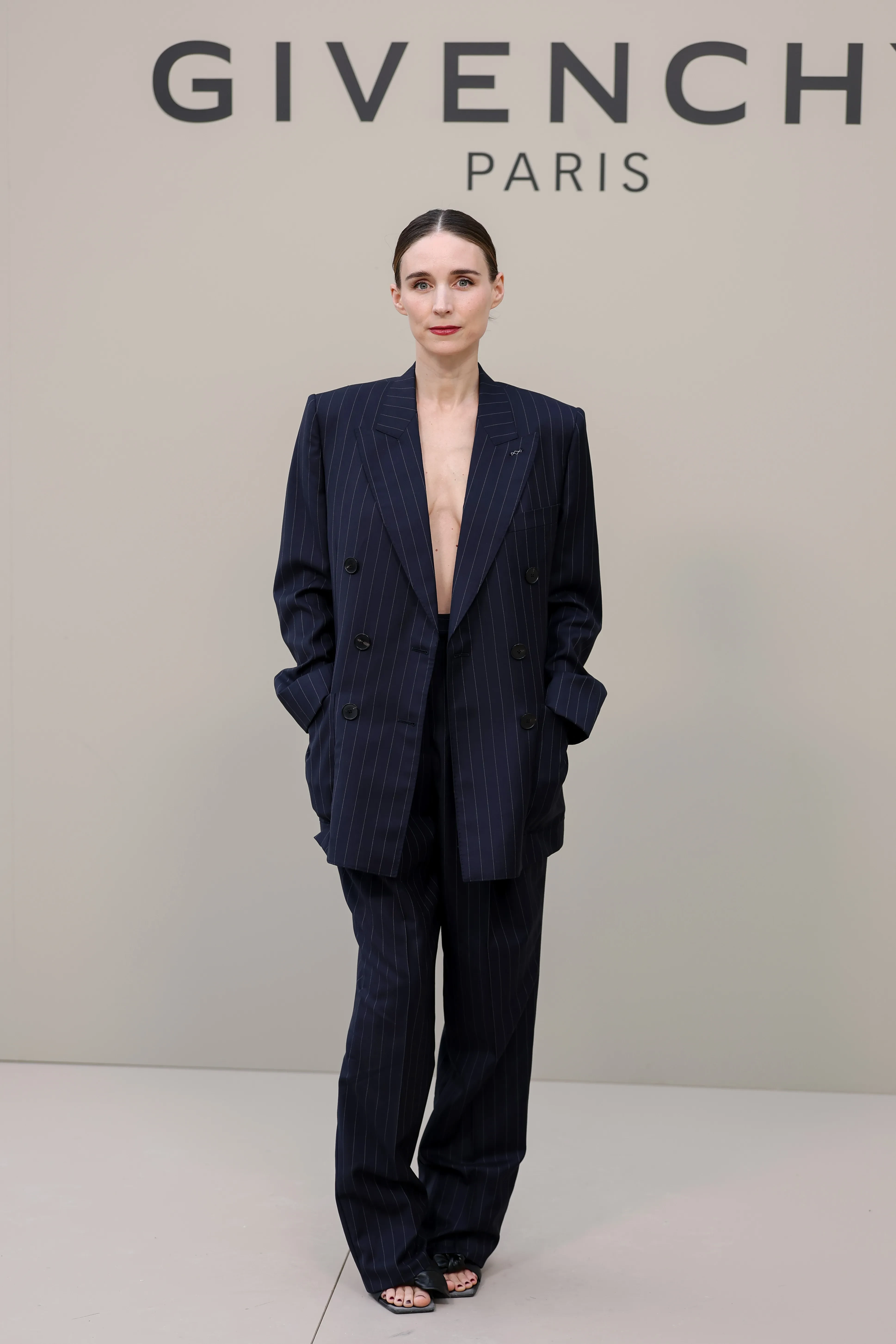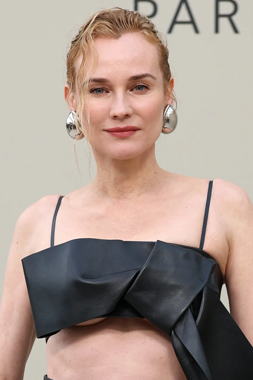 Кьяра ФерраньиУже ближе к вечеру свою коллекцию представил Givenchy. 37-летняя Элизабет Олсен пришла на шоу в сером жакете и чёрных кожаных джоггерах, дополнив образ сумкой, браслетом и босоножками с бантами. 49-летняя Диана Крюгер, блиставшая до этого на показе Isabel Marant, выбрала чёрный комплект из топа и юбки-миди, а нечастая гостья подобных мероприятий 40-летняя Руни Мара надела "на голое тело" синий брючный костюм в полоску.